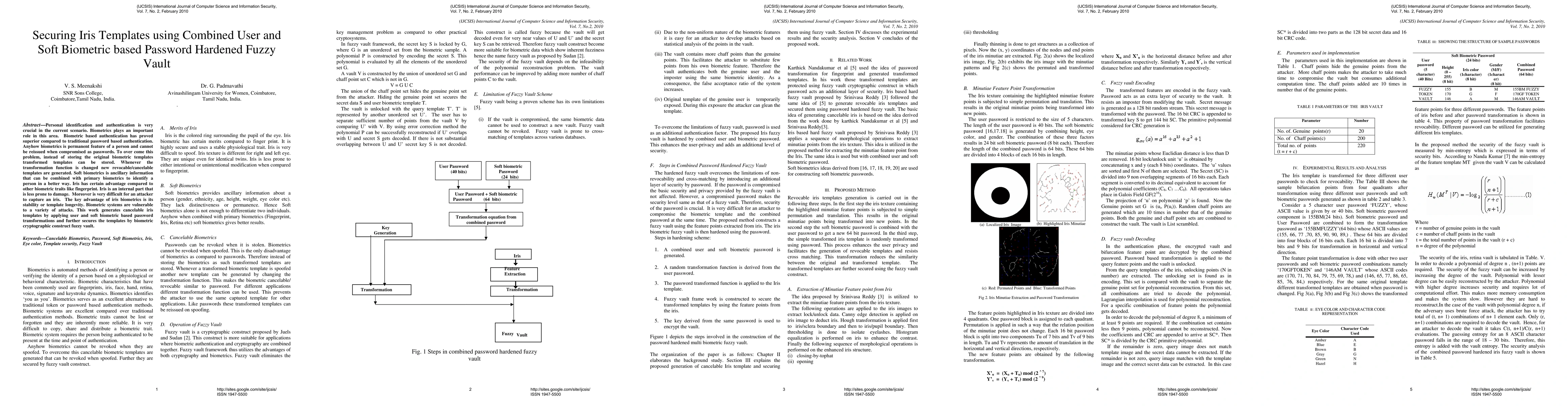 This paper proposes a method for securing iris biometric templates using a cancelable transformation technique that combines user and soft biometric information with password-based hardening, and secures the templates further through a fuzzy vault in biometric cryptography. The approach aims to enhance security by making the templates revocable and resistant to attacks.