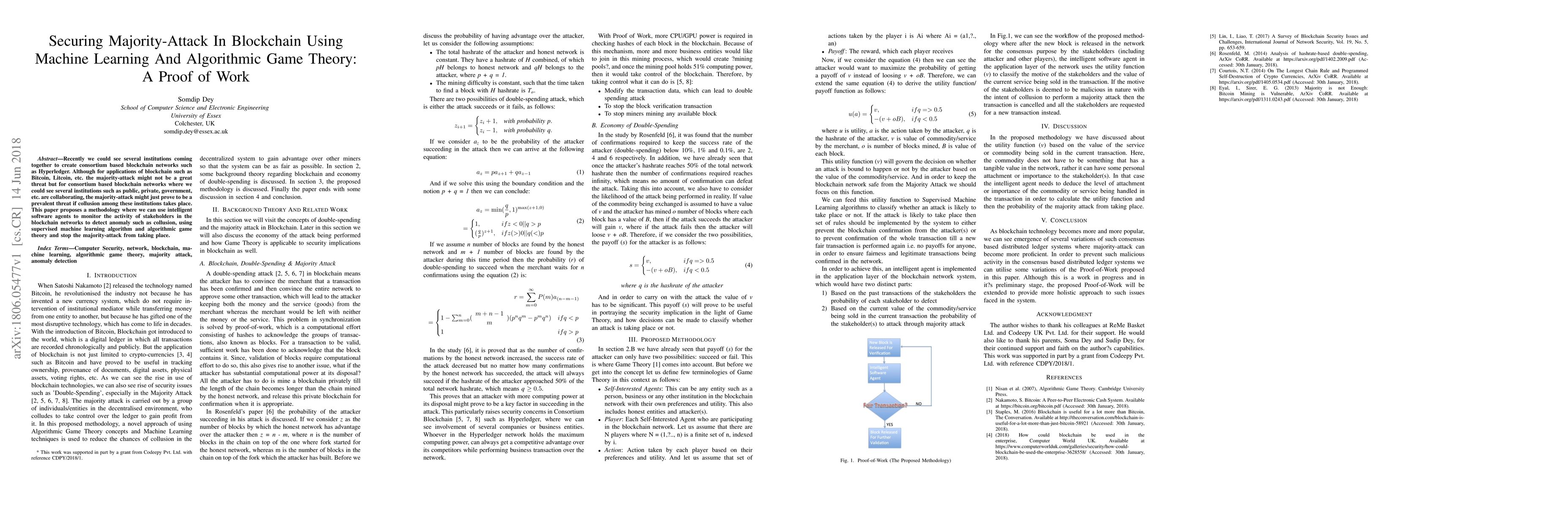 This paper proposes a methodology to secure consortium-based blockchain networks using machine learning and algorithmic game theory to detect anomalies such as collusion and prevent majority-attacks.