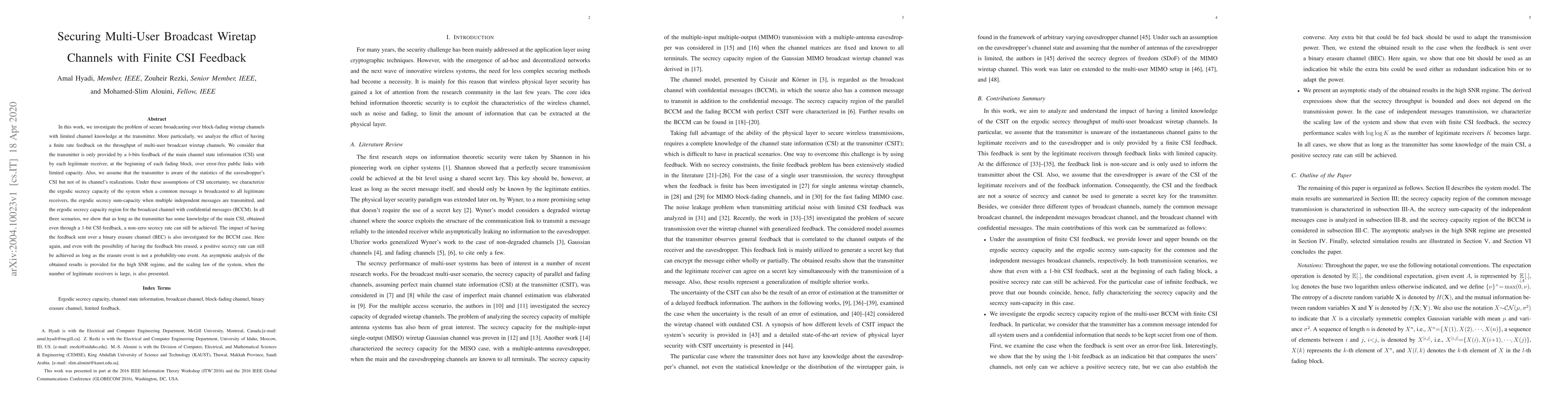 This paper explores secure broadcasting over block-fading wiretap channels with limited channel state information (CSI) feedback. It demonstrates that even with finite CSI feedback, a non-zero secrecy rate can be achieved, provided the feedback is not completely erased, and analyzes the ergodic secrecy capacity, sum-capacity, and capacity region under various scenarios.