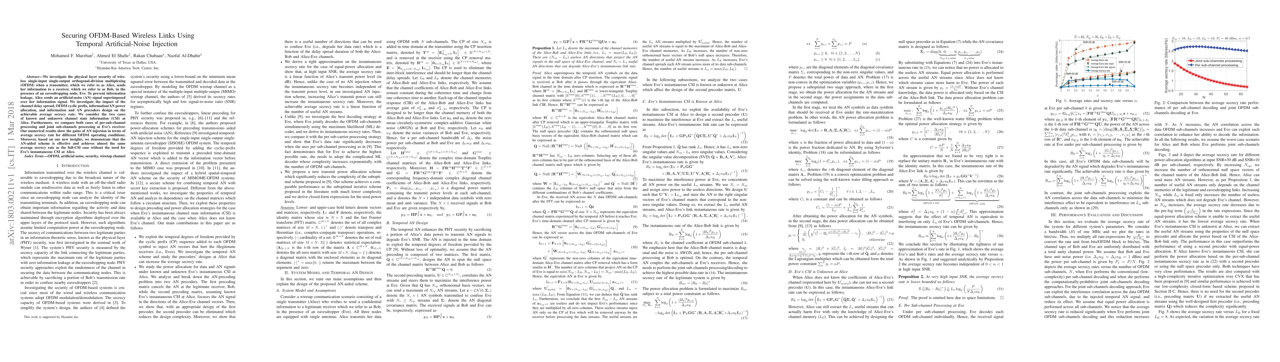 We investigate the physical layer security of wireless single-input single-output orthogonal-division multiplexing (OFDM) when a transmitter, which we refer to as Alice, sends her information to a receiver, which we refer to as Bob, in the presence of an eavesdropping node, Eve. To prevent information leakage, Alice sends an artificial-noise (AN) signal superimposed over her information signal. We investigate the impact of the channel delay spread, OFDM cyclic prefix, information/AN power allocation, and information and AN precoders design on the achievable average secrecy rate. We consider the two cases of known and unknown channel state information (CSI) at Alice. Furthermore, we compare both cases of per-sub-channel processing and joint sub-channels processing at Eve's receiver. Our numerical results show the gain of AN injection in terms of average secrecy rate for different OFDM operating conditions. Moreover, based on our new insights, we demonstrate that the AN-aided scheme is effective and achieves almost the same average secrecy rate as the full-CSI case without the need for Eve's instantaneous CSI at Alice.
