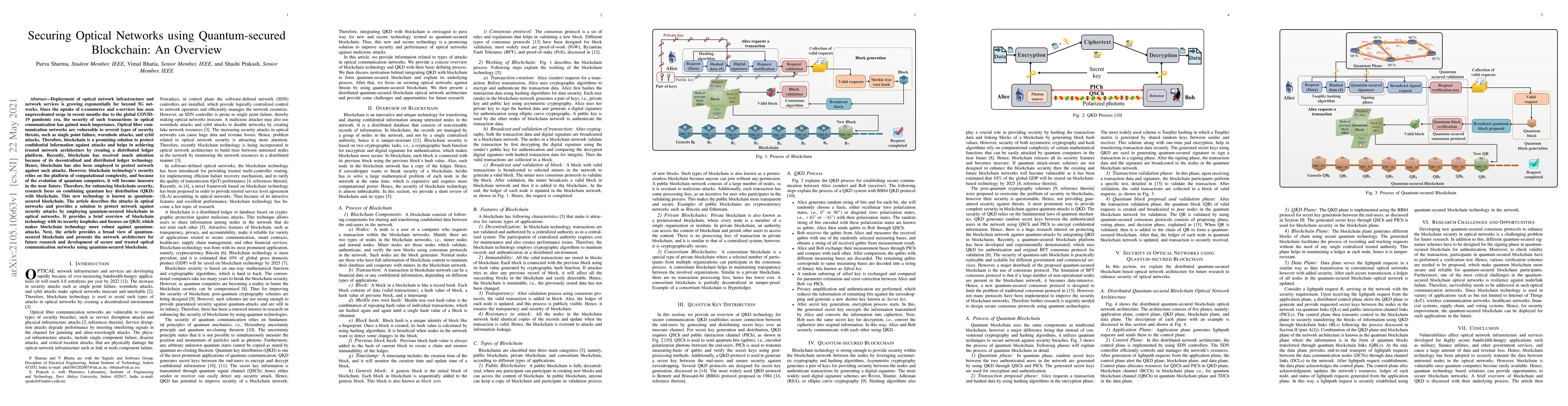 This paper discusses the growing security concerns in optical networks due to vulnerabilities like single point failures and attacks, and proposes quantum-secured blockchain as a solution. It highlights the integration of quantum key distribution (QKD) with blockchain to enhance security against future quantum computer threats, providing a framework for secure and trusted optical communication networks.