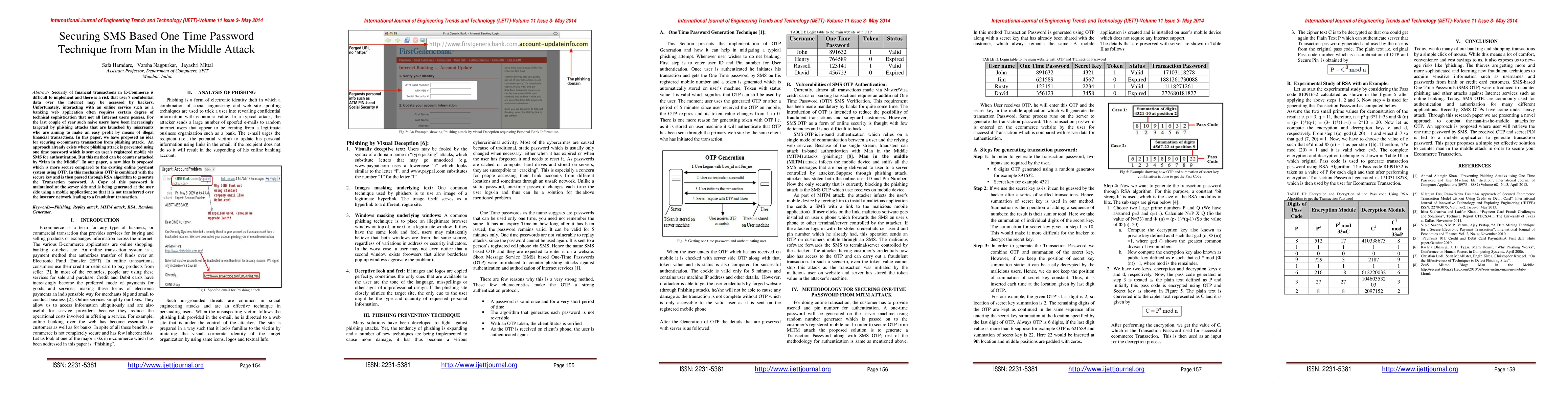 This paper proposes a more secure method for e-commerce transactions by combining one-time passwords (OTP) with secure keys and RSA encryption to prevent phishing attacks, ensuring OTPs are not transmitted over insecure networks. The generated transaction password is stored on the server and created on the user side via a mobile app.
