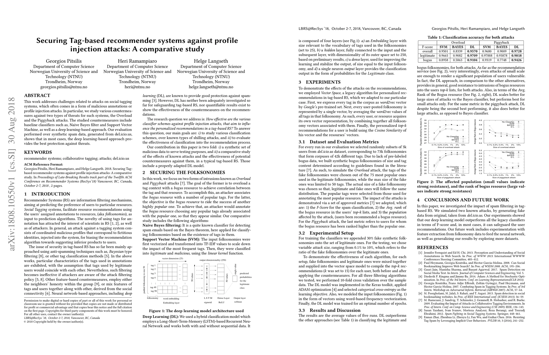 This study evaluates countermeasures against profile injection attacks in social tagging systems, finding that a deep learning-based approach provides the best protection against threats.