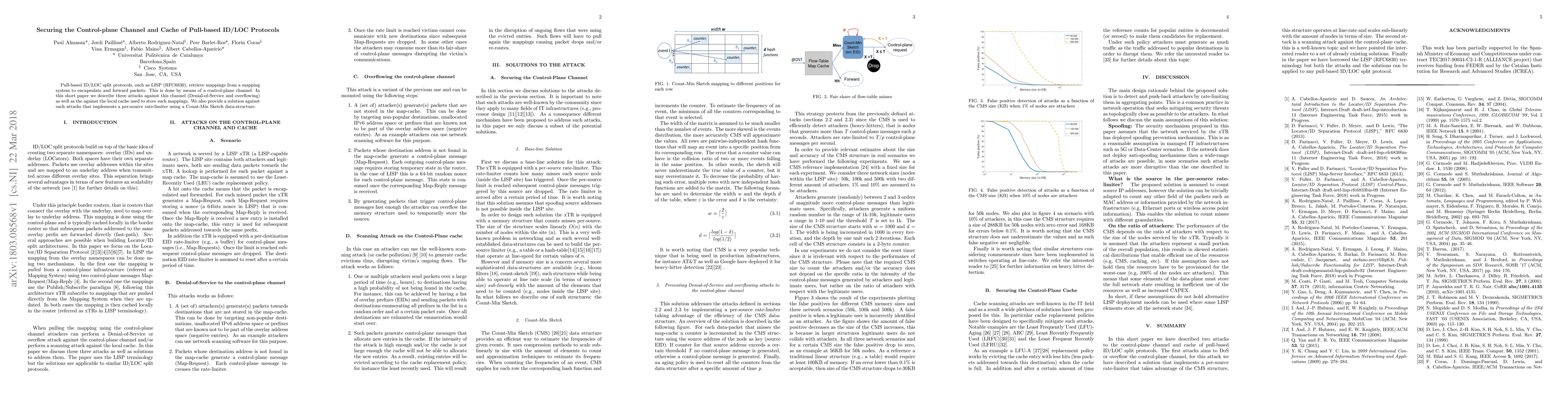 Pull-based ID/LOC split protocols, such as LISP (RFC6830), retrieve mappings from a mapping system to encapsulate and forward packets. This is done by means of a control-plane channel. In this short paper we describe three attacks against this channel (Denial-of-Service and overflowing) as well as the against the local cache used to store such mappings. We also provide a solution against such attacks that implements a per-source rate-limiter using a Count-Min Sketch data-structure.