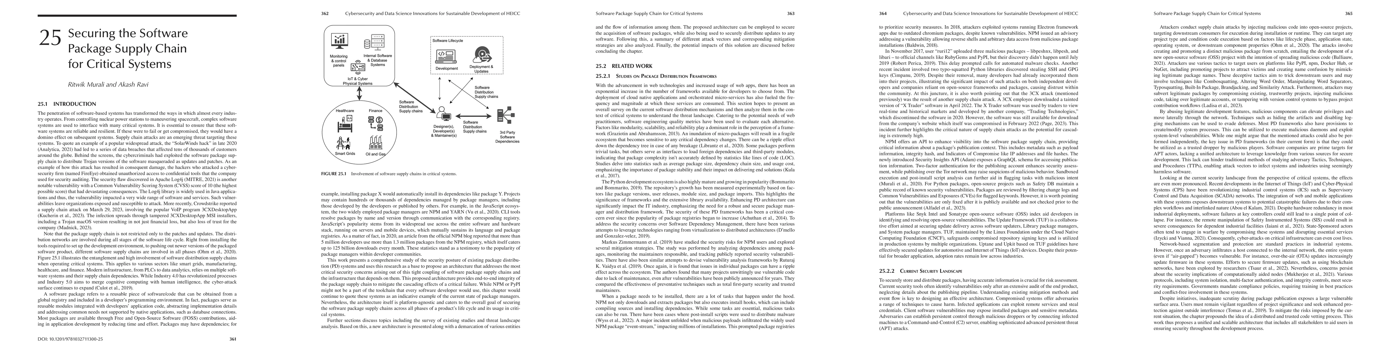 Software systems have grown as an indispensable commodity used across various industries, and almost all essential services depend on them for effective operation. The software is no longer an independent or stand-alone piece of code written by a developer but rather a collection of packages designed by multiple developers across the globe. Ensuring the reliability and resilience of these systems is crucial since emerging threats target software supply chains, as demonstrated by the widespread SolarWinds hack in late 2020. These supply chains extend beyond patches and updates, involving distribution networks throughout the software lifecycle. Industries like smart grids, manufacturing, healthcare, and finance rely on interconnected software systems and their dependencies for effective functioning. To secure software modules and add-ons, robust distribution architectures are essential. The proposed chapter enhances the existing delivery frameworks by including a permissioned ledger with Proof of Authority consensus and multi-party signatures. The proposed system aims to prevent attacks while permitting every stakeholder to verify the same. Critical systems can interface with the secure pipeline without disrupting existing functionalities, thus preventing the cascading effect of an attack at any point in the supply chain.