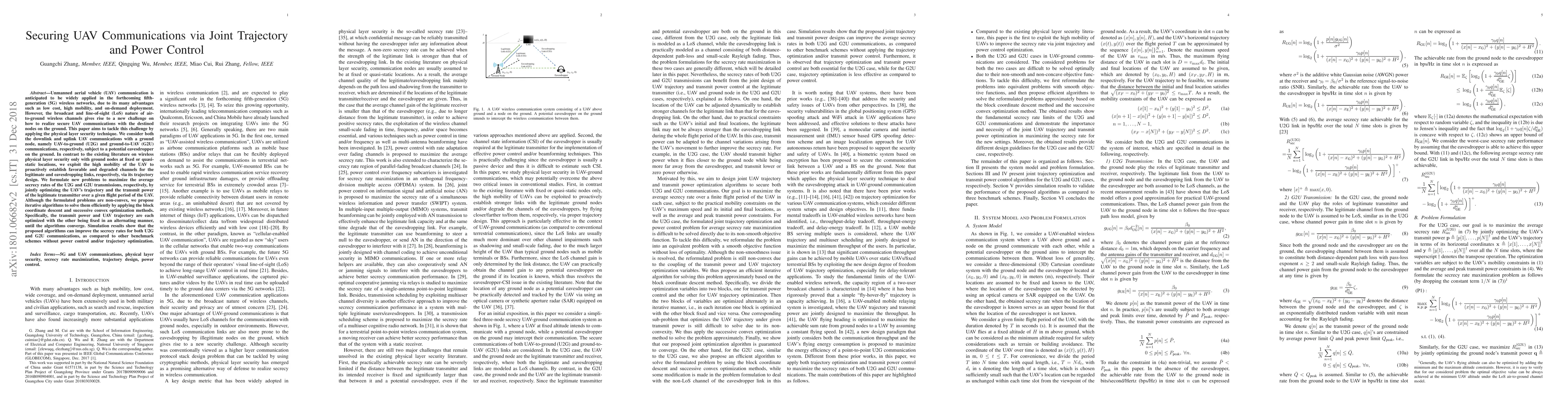 This paper proposes a method to secure UAV communications using joint trajectory and power control to maximize average secrecy rates in both downlink and uplink scenarios. It leverages the UAV's mobility to optimize its trajectory and transmit power, employing iterative algorithms to solve non-convex optimization problems, thereby improving secrecy rates compared to benchmark schemes.