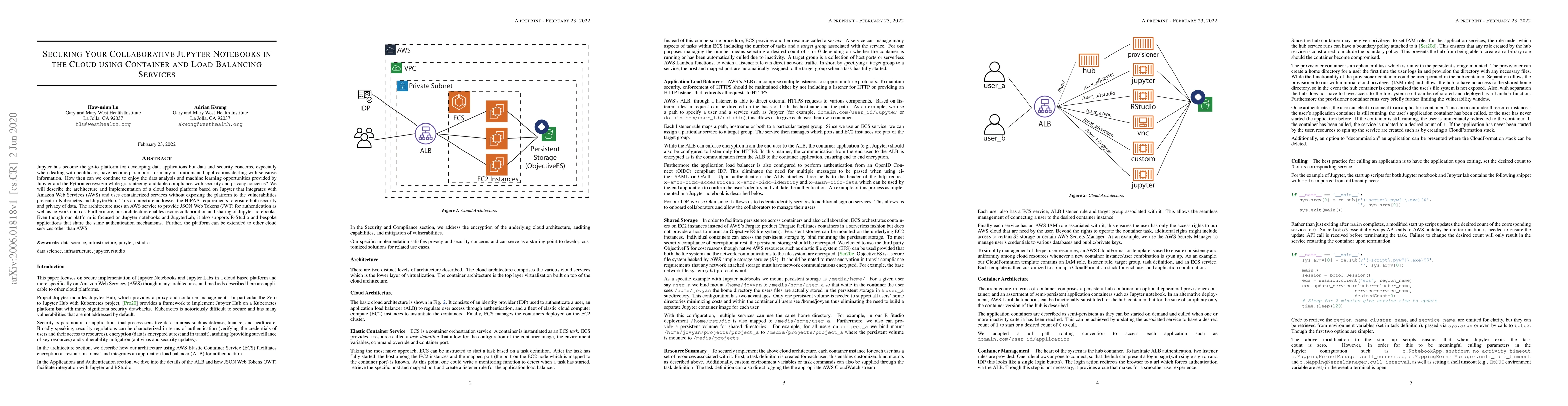 This paper proposes a secure cloud-based platform for collaborative Jupyter notebooks using AWS, container services, and load balancing to ensure HIPAA compliance, addressing data security and privacy concerns while maintaining the collaborative advantages of Jupyter. The architecture leverages AWS for authentication and network control, enabling secure sharing and collaboration without exposing vulnerabilities.