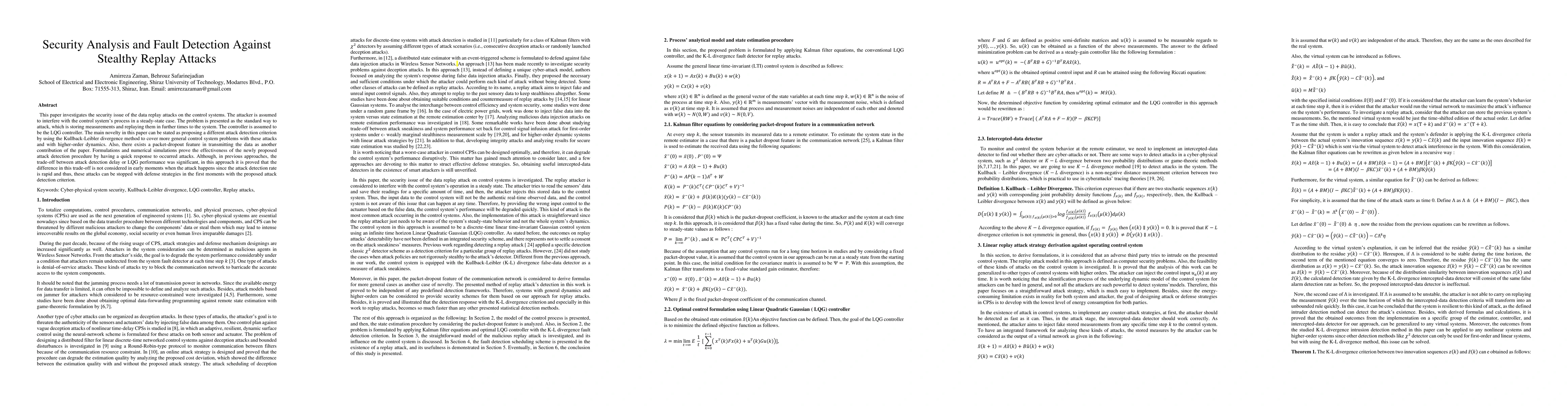 This paper proposes a new method for detecting stealthy replay attacks on control systems using K-L divergence, which can quickly identify attacks with high accuracy and allow for rapid defense strategies. The proposed approach outperforms previous methods in terms of attack detection rate.