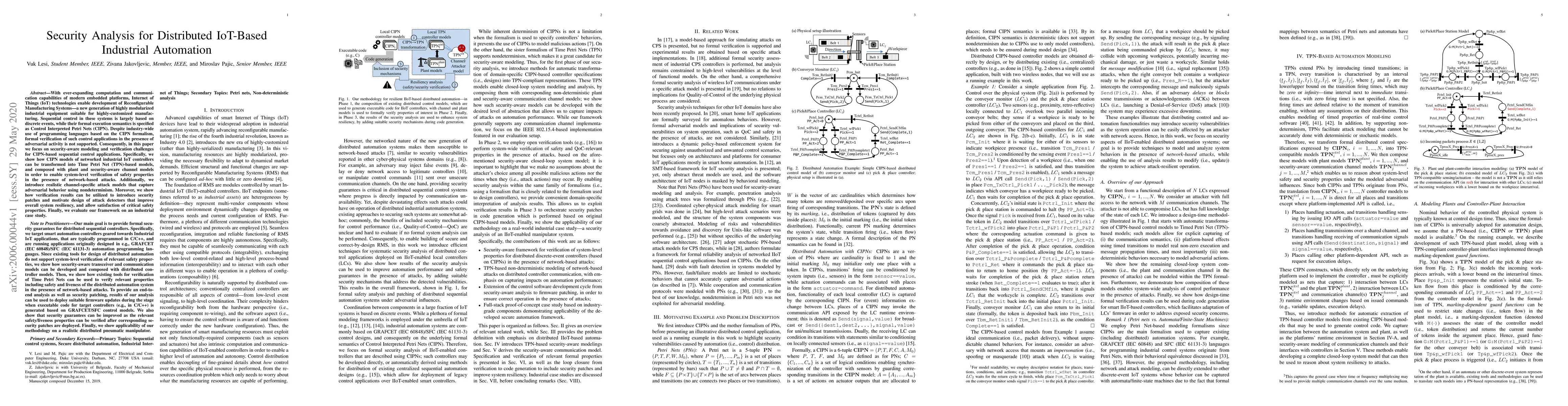 This paper addresses security challenges in CIPN-based sequential control for IoT-enabled industrial automation, proposing a framework to transform CIPN models into TPN models for enhanced verification against network-based attacks. It introduces attack models and demonstrates how verification results can guide security patches and design of attack detectors to improve system resiliency.