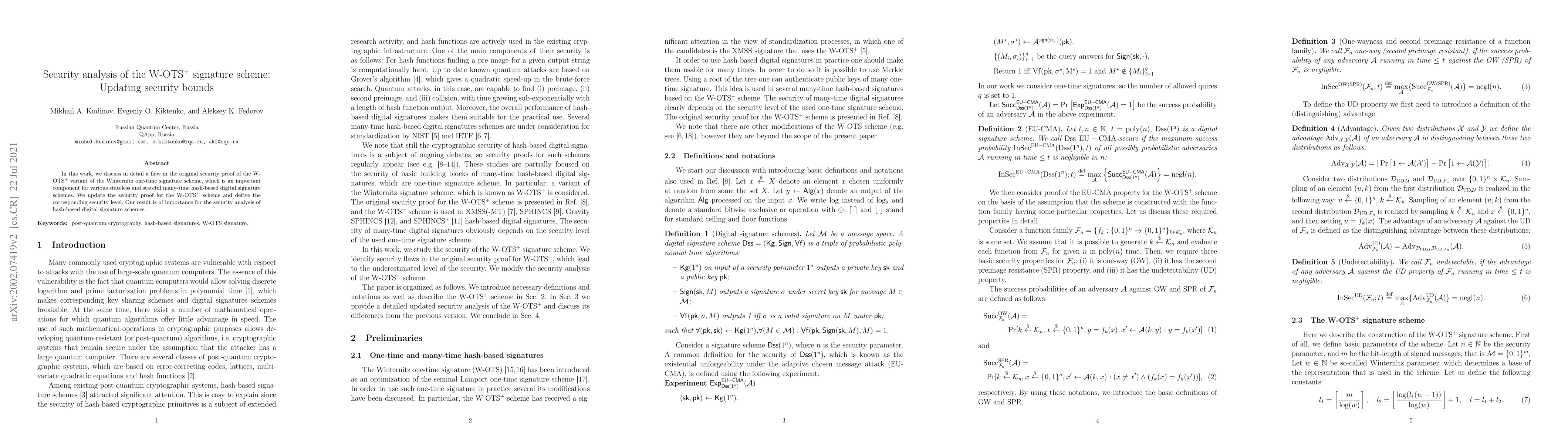 This paper identifies a flaw in the original security proof of the W-OTS$^+$ variant of the Winternitz one-time signature scheme and updates the security proof, deriving a new security level. This updated analysis is crucial for the security evaluation of hash-based digital signature schemes.