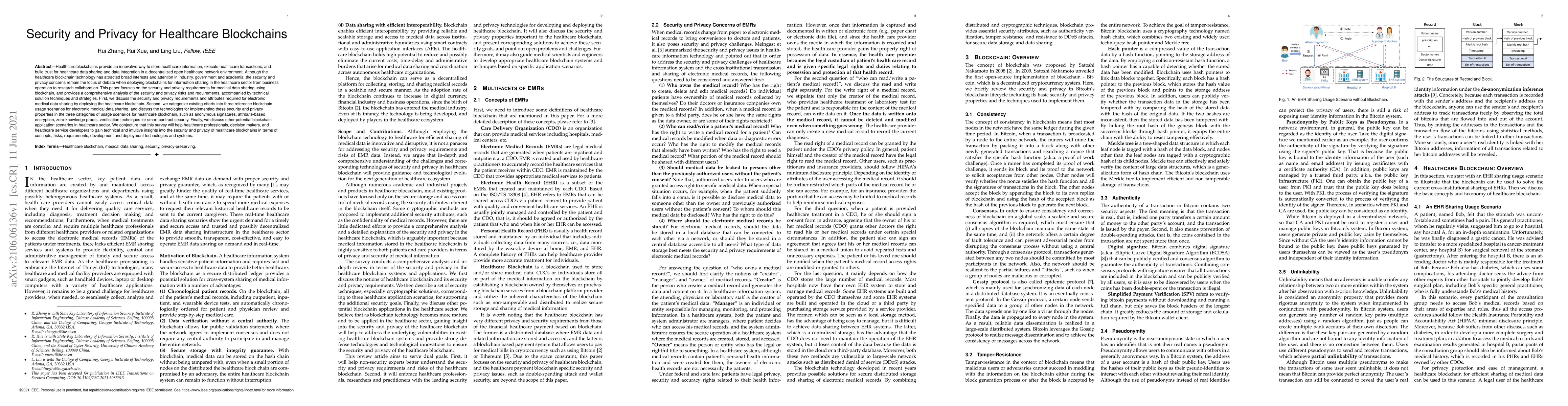 This paper examines security and privacy concerns for healthcare blockchains, analyzing risks and requirements for medical data sharing. It categorizes existing solutions into three usage scenarios, discussing technologies like anonymous signatures and smart contract security, and aims to provide insights for healthcare professionals and developers.