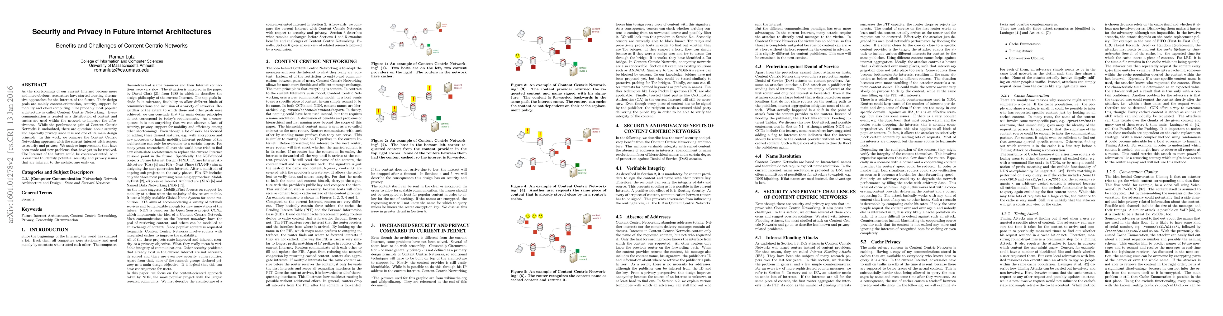 This paper examines the potential security and privacy benefits and challenges of Content Centric Networking (CCN) as an alternative to current Internet architectures. While CCN promises improved performance through content distribution and caching, it raises new concerns regarding security and privacy, which are not primary design goals.