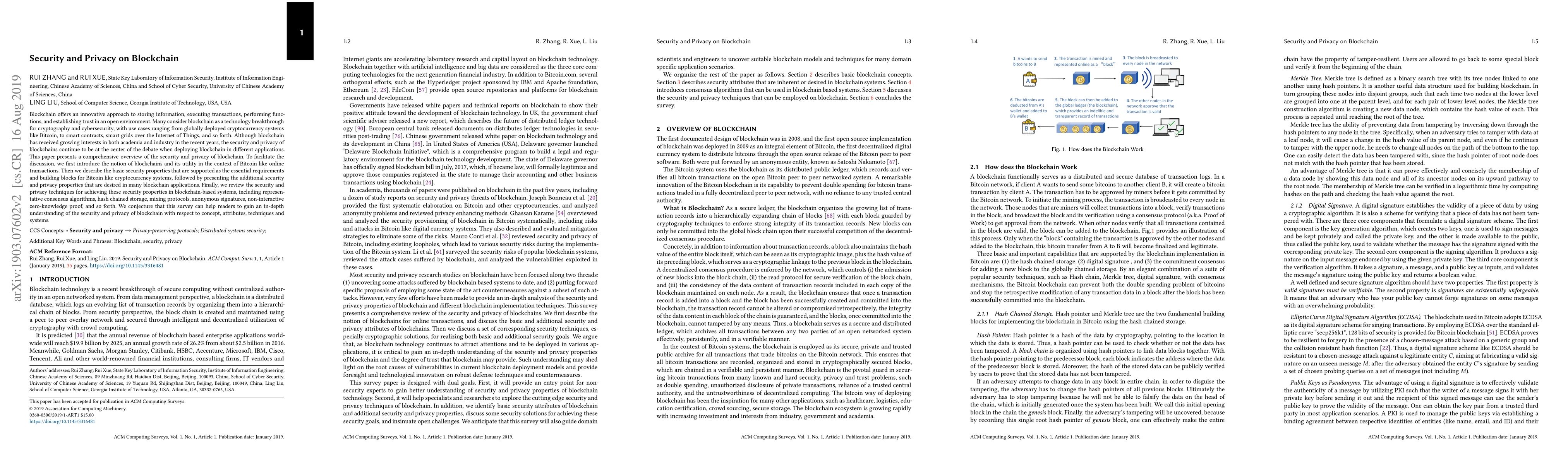 The paper provides a comprehensive overview of blockchain security and privacy, discussing essential security properties, desired additional properties, and techniques for achieving them.