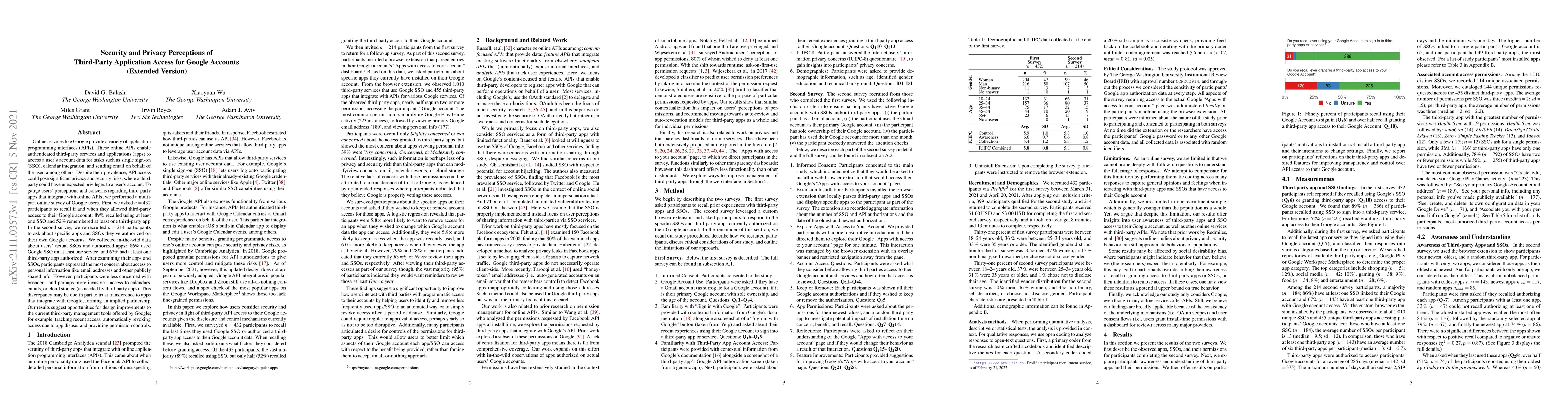 The paper presents an empirical study on user perceptions of third-party app access for Google accounts, providing insights into user concerns and suggesting design improvements for better transparency and control.