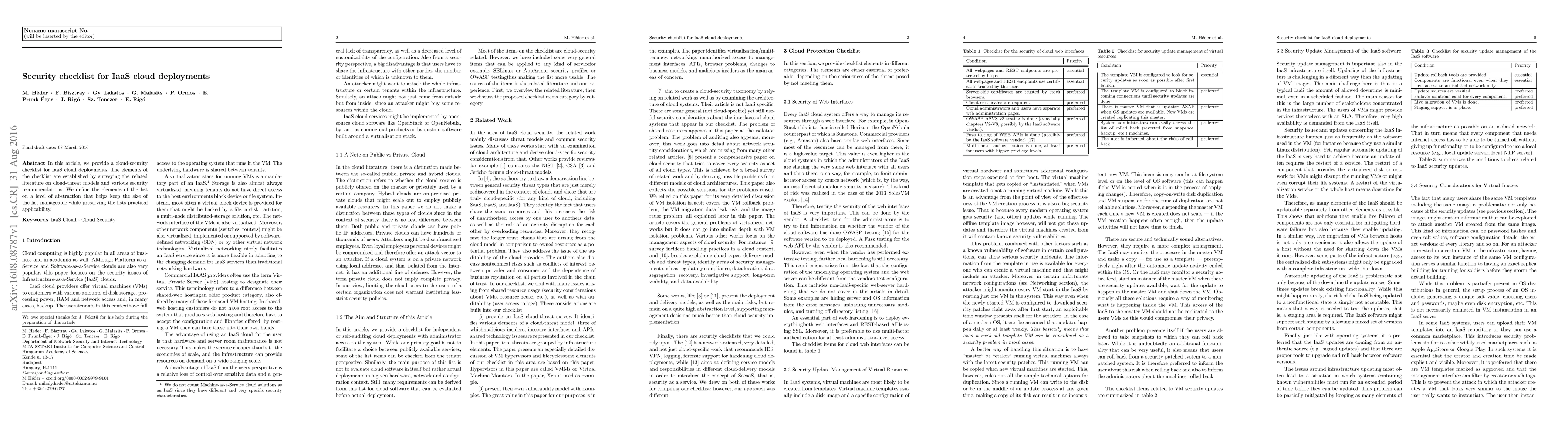 In this article, we provide a cloud-security checklist for IaaS cloud deployments. The elements of the checklist are established by surveying the related literature on cloud-threat models and various security recommendations. We define the elements of the list on a level of abstraction that helps keep the size of the list manageable while preserving the list's practical applicability.