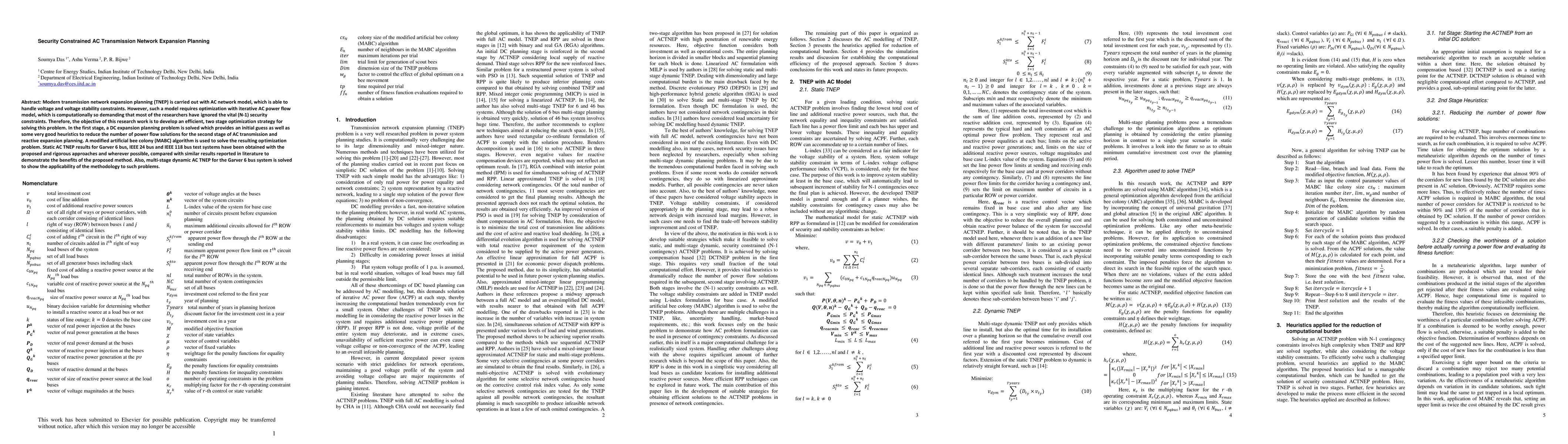 This research develops an efficient two-stage optimization strategy for security-constrained AC transmission network expansion planning, utilizing a DC model for initial heuristics and a modified artificial bee colony algorithm for final AC optimization, demonstrating improved results on standard test systems. The proposed method effectively incorporates (N-1) security constraints, reducing computational demands.