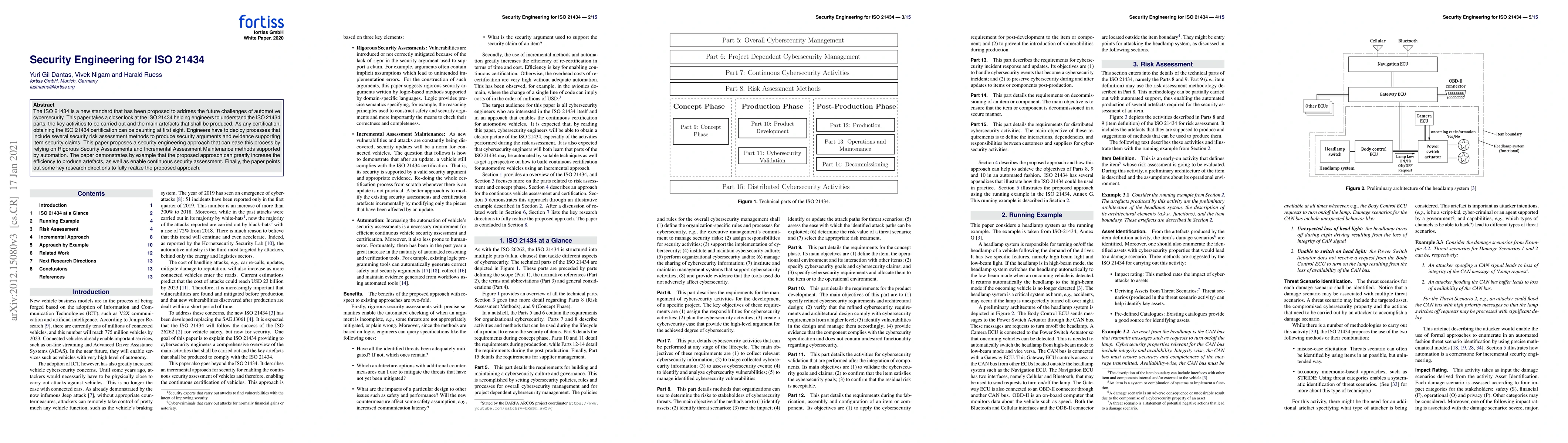 The ISO 21434 is a new standard that has been proposed to address the future challenges of automotive cybersecurity. This white paper takes a closer look at the ISO 21434 helping engineers to understand the ISO 21434 parts, the key activities to be carried out and the main artefacts that shall be produced. As any certification, obtaining the ISO 21434 certification can be daunting at first sight. Engineers have to deploy processes that include several security risk assessment methods to produce security arguments and evidence supporting item security claims. In this white paper, we propose a security engineering approach that can ease this process by relying on Rigorous Security Assessments and Incremental Assessment Maintenance methods supported by automation. We demonstrate by example that the proposed approach can greatly increase the quality of the produced artefacts, the efficiency to produce them, as well as enable continuous security assessment. Finally, we point out some key research directions that we are investigating to fully realize the proposed approach.