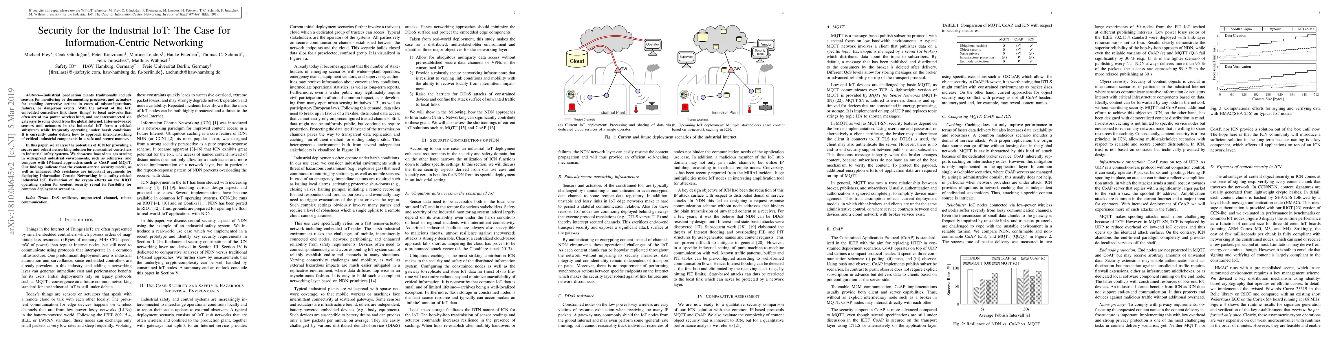 This paper explores the use of Information-Centric Networking (ICN) to secure industrial IoT systems, emphasizing its potential for robust and secure communication in harsh environments. The study finds that ICN offers enhanced security and resistance to DoS attacks compared to traditional IP-based approaches, making it a viable solution for critical industrial applications.