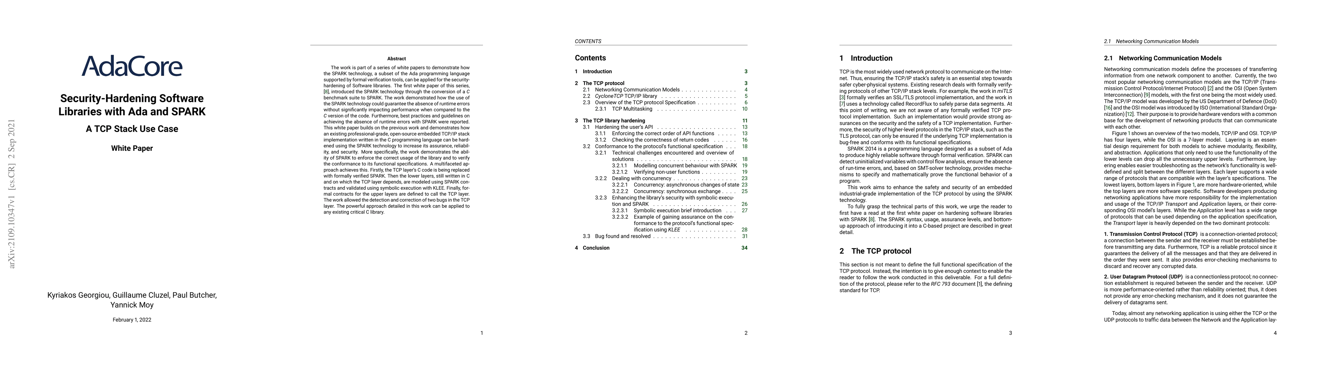 This white paper demonstrates how the assurance, reliability, and security of an existing professional-grade, open-source embedded TCP/IP stack implementation written in the C programming language is significantly enhanced by adopting the SPARK technology. A multifaceted approach achieves this. Firstly, the TCP layer's C code is being replaced with formally verified SPARK, a subset of the Ada programming language supported by formal verification tools. Then the lower layers, still written in C and on which the TCP layer depends, are modeled using SPARK contracts and validated using symbolic execution with KLEE. Finally, formal contracts for the upper layers are defined to call the TCP layer. The work allowed the detection and correction of two bugs in the TCP layer. In an increasingly connected world, where Cyber Security is of paramount importance, the powerful approach detailed in this work can be applied to any existing critical C library to harden their reliability and security significantly.