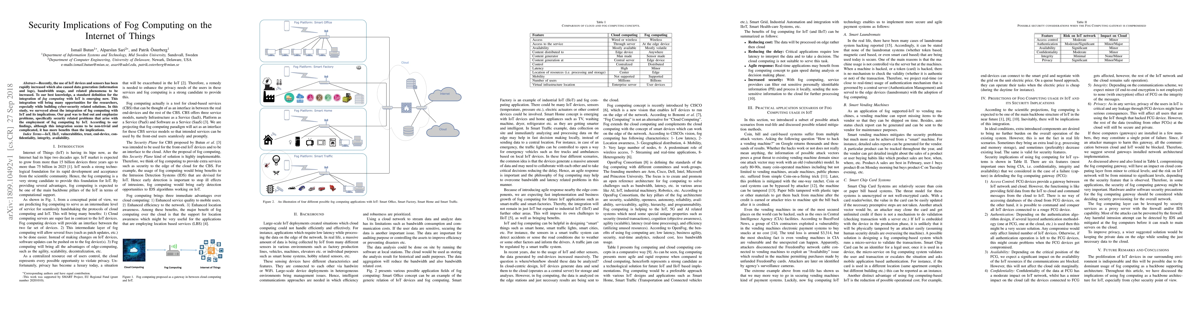 Recently, the use of IoT devices and sensors has been rapidly increased which also caused data generation (information and logs), bandwidth usage, and related phenomena to be increased. To our best knowledge, a standard definition for the integration of fog computing with IoT is emerging now. This integration will bring many opportunities for the researchers, especially while building cyber-security related solutions. In this study, we surveyed about the integration of fog computing with IoT and its implications. Our goal was to find out and emphasize problems, specifically security related problems that arise with the employment of fog computing by IoT. According to our findings, although this integration seems to be non-trivial and complicated, it has more benefits than the implications.