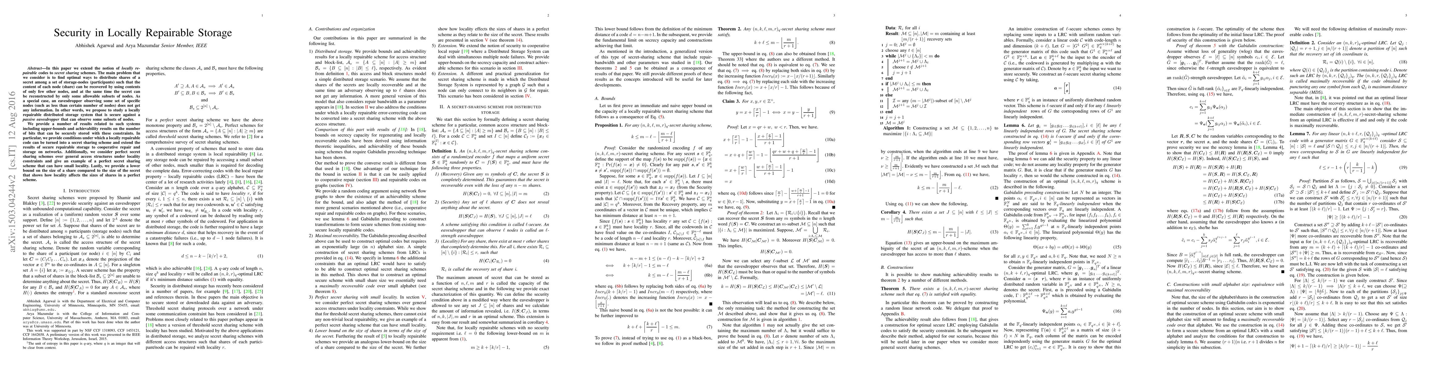 The main technical contribution of this research is the development of a new framework for designing and analyzing locally recoverable codes, which provides a more efficient and secure approach to distributed storage systems.