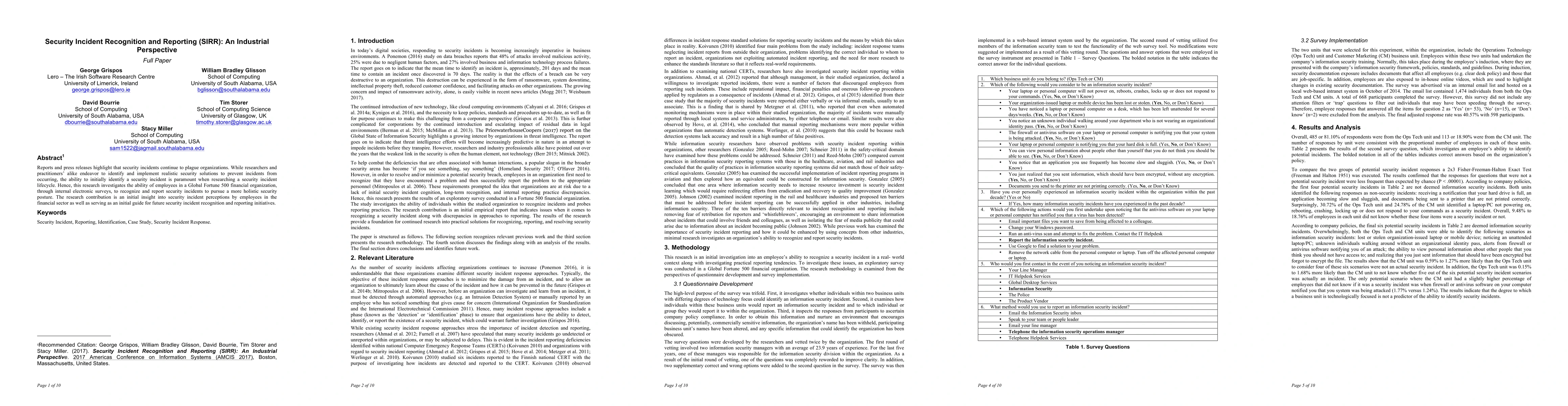 This study examines employees' ability to recognize and report security incidents within a Global Fortune 500 financial firm, using internal surveys. The research provides initial insights into employee perceptions of security incidents and serves as a foundational guide for future recognition and reporting initiatives.
