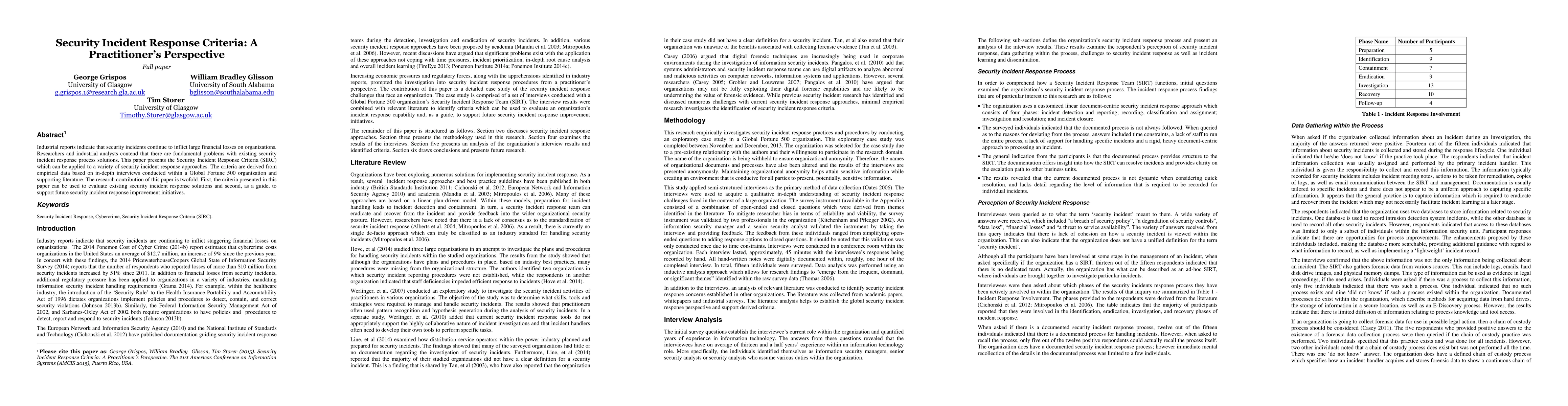 This paper introduces the Security Incident Response Criteria (SIRC) derived from empirical data and interviews within a Global Fortune 500 organization, aiming to evaluate existing security incident response solutions and guide future improvements. The SIRC offers a framework to address fundamental problems in current incident response processes.