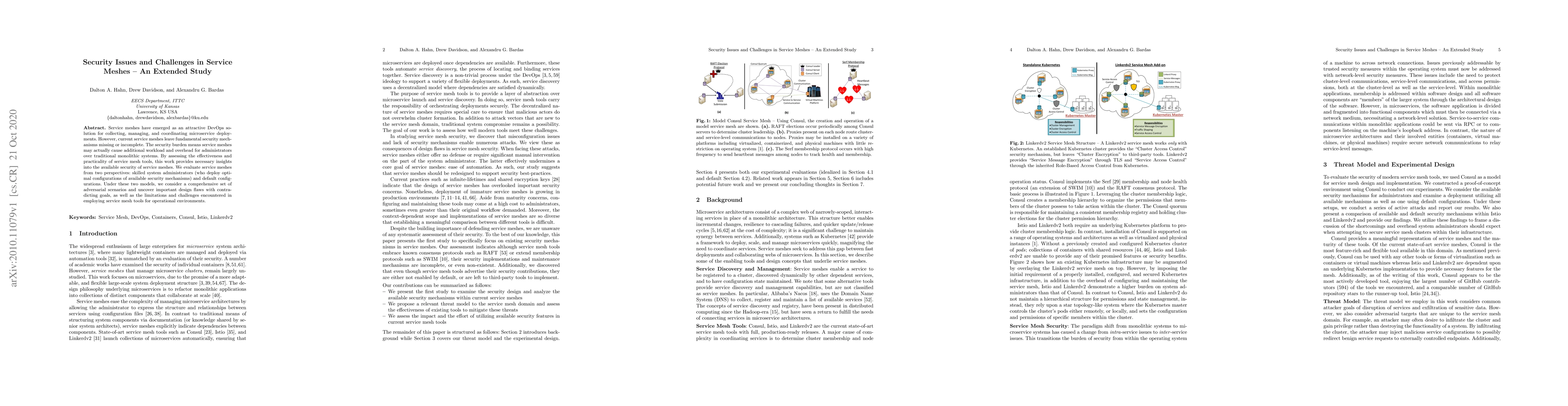 This paper investigates the security issues and challenges in service meshes, finding that while they offer DevOps benefits, they often lack fundamental security mechanisms. The study evaluates service meshes under optimal and default configurations, revealing design flaws, contradicting goals, and operational limitations that hinder effective security.