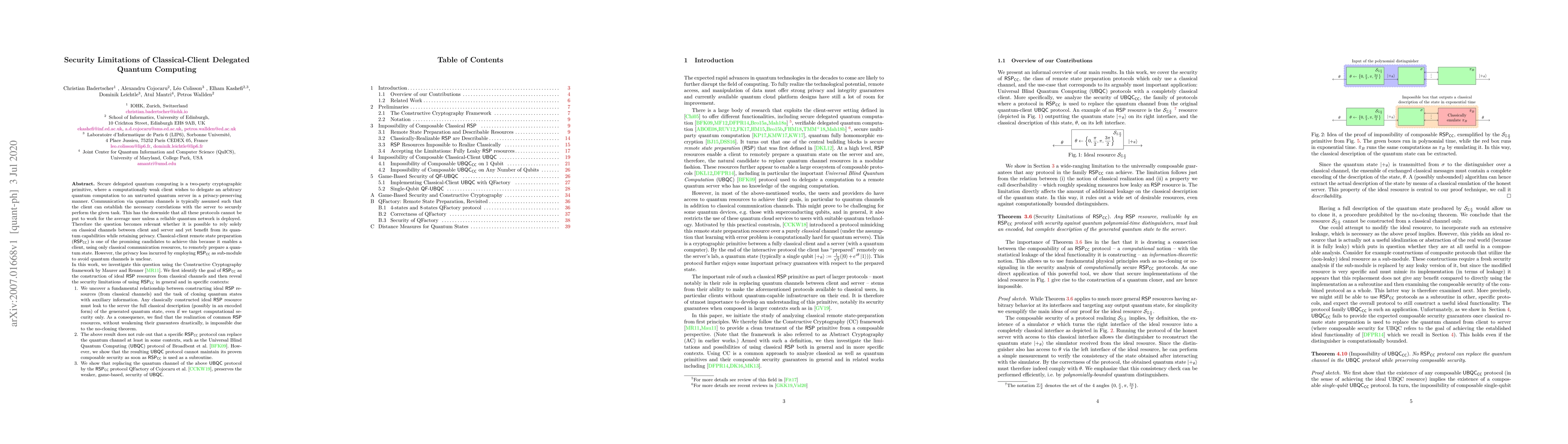 This paper investigates the security limitations of classical-client delegated quantum computing, focusing on the classical-client remote state preparation ($RSP_{CC}$). It reveals that $RSP_{CC}$ cannot construct ideal resources without leaking the full classical description of the quantum state, violating the no-cloning theorem, and thus cannot maintain the security guarantees of the Universal Blind Quantum Computing (UBQC) protocol.