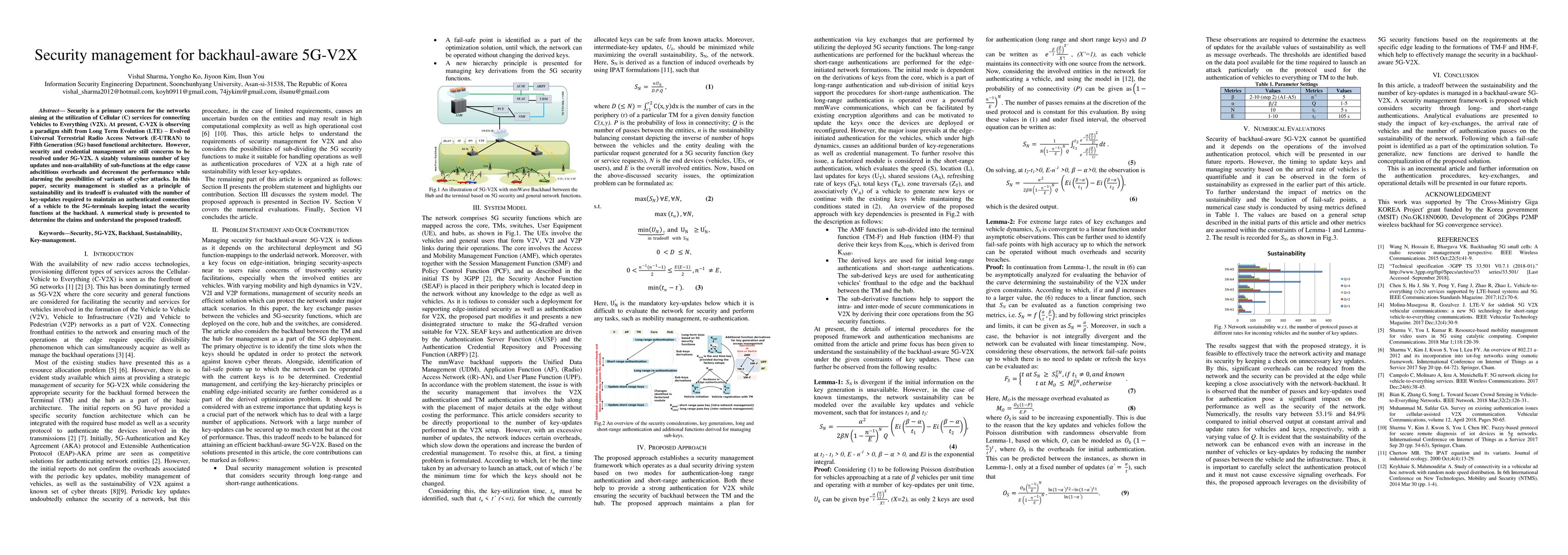 Security is a primary concern for the networks aiming at the utilization of Cellular (C) services for connecting Vehicles to Everything (V2X). At present, C-V2X is observing a paradigm shift from Long Term Evolution (LTE) - Evolved Universal Terrestrial Radio Access Network (E-UTRAN) to Fifth Generation (5G) based functional architecture. However, security and credential management are still concerns to be resolved under 5G-V2X. A sizably voluminous number of key updates and non-availability of sub-functions at the edge cause adscititious overheads and decrement the performance while alarming the possibilities of variants of cyber attacks. In this paper, security management is studied as a principle of sustainability and its tradeoff is evaluated with the number of key-updates required to maintain an authenticated connection of a vehicle to the 5G-terminals keeping intact the security functions at the backhaul. A numerical study is presented to determine the claims and understand the proposed tradeoff.