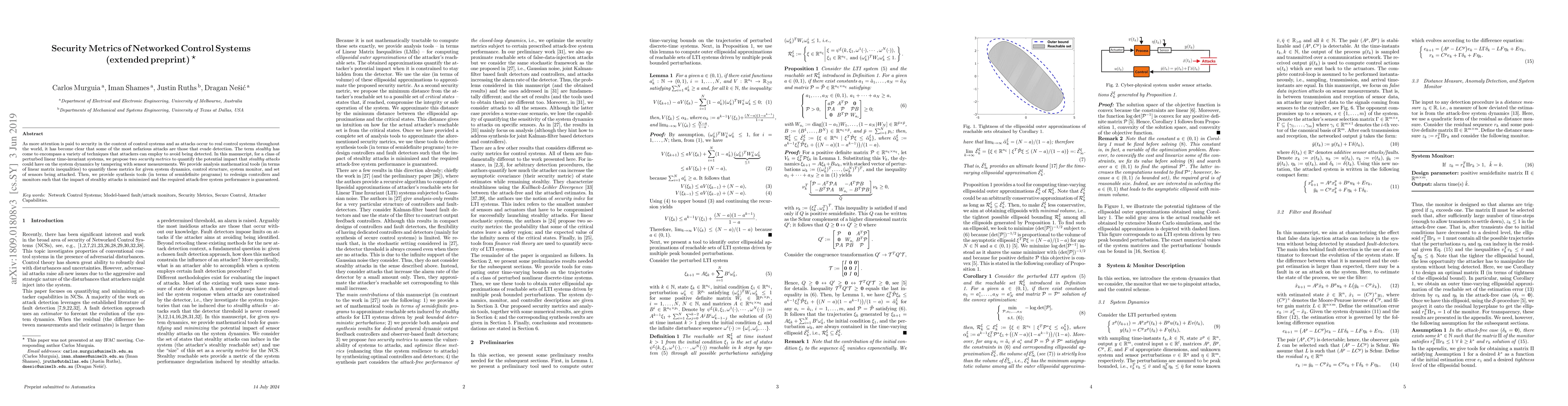 As more attention is paid to security in the context of control systems and as attacks occur to real control systems throughout the world, it has become clear that some of the most nefarious attacks are those that evade detection. The term stealthy has come to encompass a variety of techniques that attackers can employ to avoid being detected. In this manuscript, for a class of perturbed linear time-invariant systems, we propose two security metrics to quantify the potential impact that stealthy attacks could have on the system dynamics by tampering with sensor measurements. We provide analysis mathematical tools (in terms of linear matrix inequalities) to quantify these metrics for given system dynamics, control structure, system monitor, and set of sensors being attacked. Then, we provide synthesis tools (in terms of semidefinite programs) to redesign controllers and monitors such that the impact of stealthy attacks is minimized and the required attack-free system performance is guaranteed.