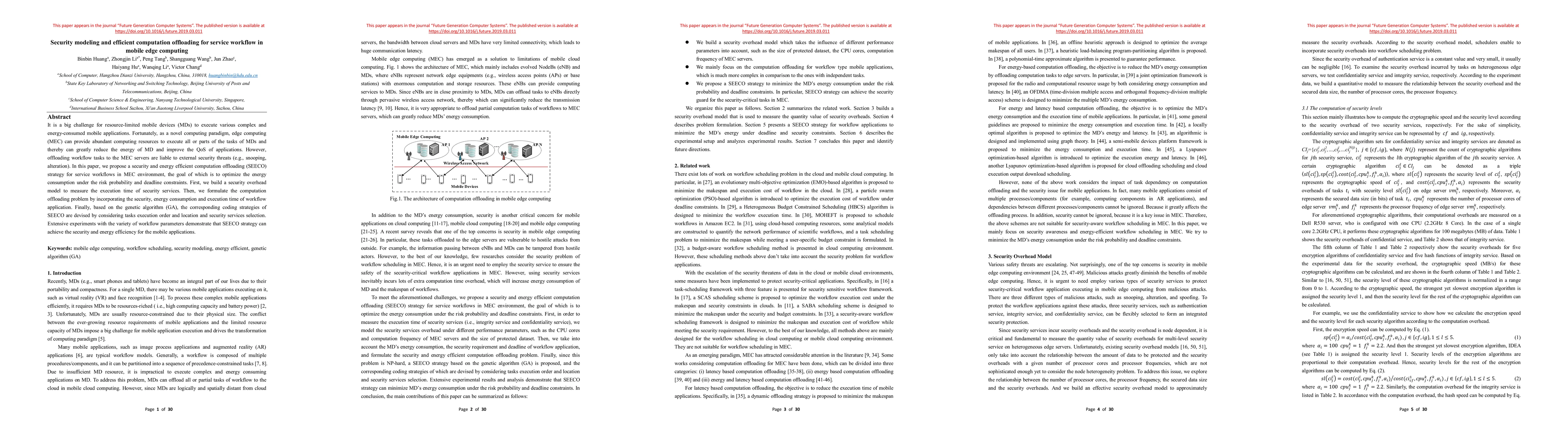 This paper proposes a SEECO strategy for optimizing energy consumption in mobile edge computing (MEC) while addressing security risks in computation offloading. It models security overhead and formulates the offloading problem, using genetic algorithms to devise coding strategies that balance security, energy, and execution time.