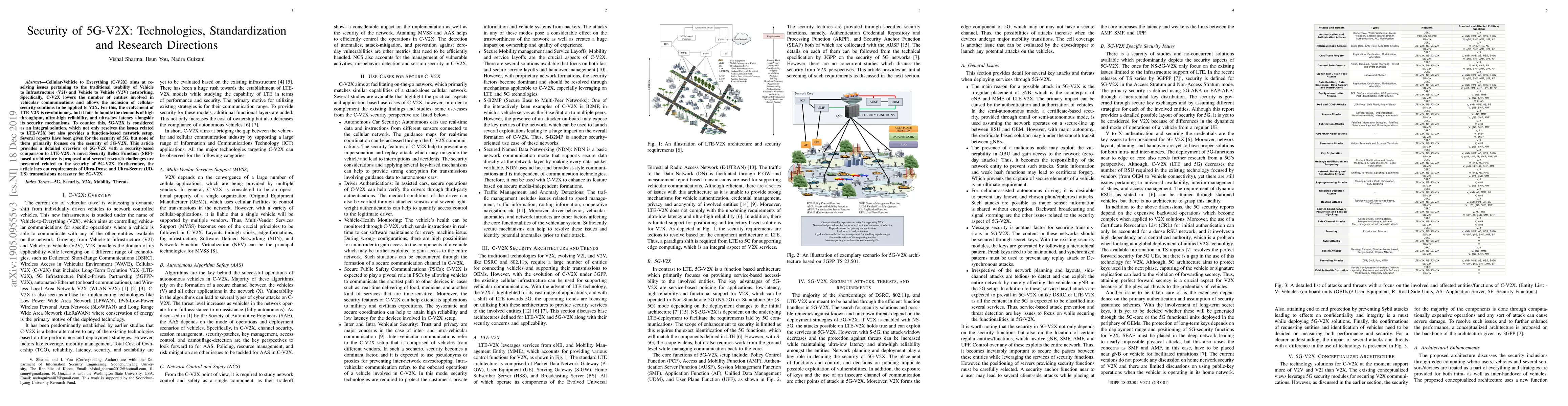 This paper examines the security aspects of 5G-V2X, comparing it to LTE-V2X, and proposes a novel Security Reflex Function (SRF)-based architecture to address its unique challenges. It highlights the need for Ultra-Dense and Ultra-Secure transmissions in 5G-V2X, and outlines several research challenges pertinent to its security.