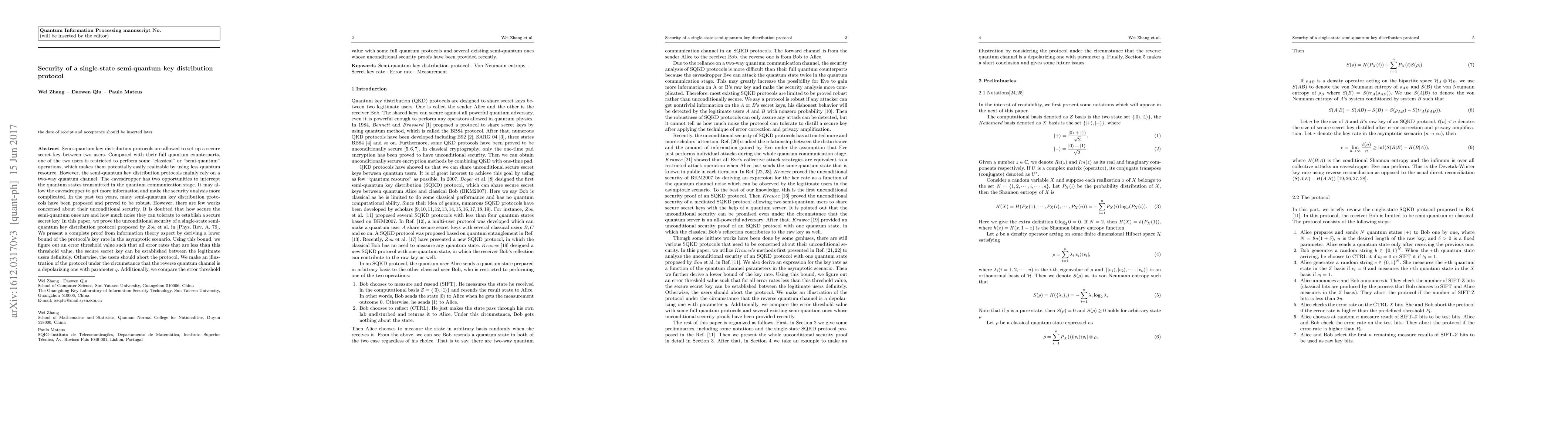 This paper proves the unconditional security of a single-state semi-quantum key distribution protocol, establishing a lower bound for its key rate. It determines an error threshold that guarantees secure key establishment, illustrating the protocol under a depolarizing reverse quantum channel.