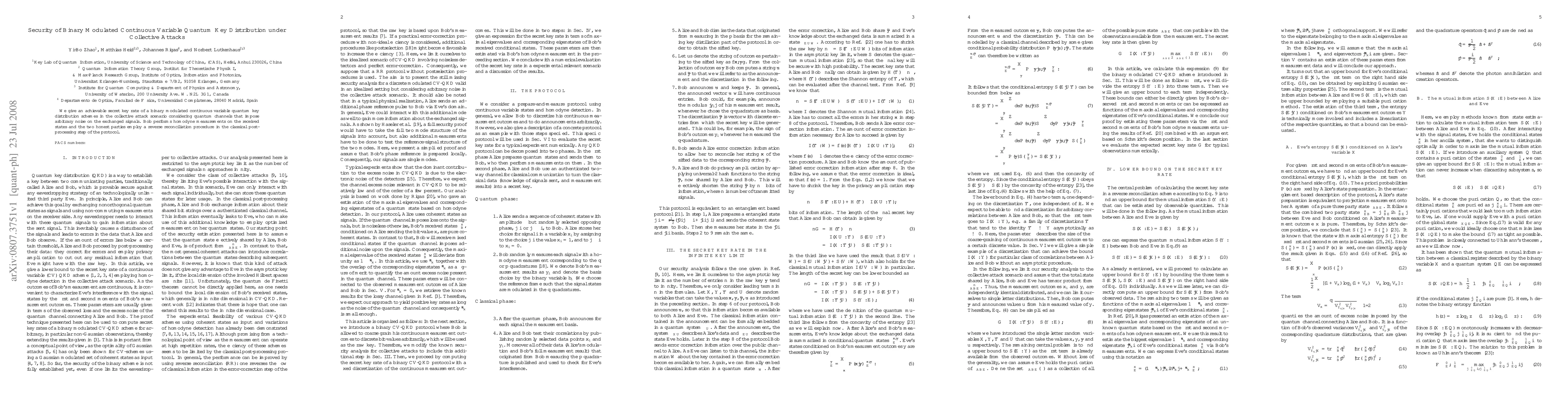 We give an achievable secret key rate of a binary modulated continuous variable quantum key distribution schemes in the collective attack scenario considering quantum channels that impose arbitrary noise on the exchanged signals. Bob performs homodyne measurements on the received states and the two honest parties employ a reverse reconciliation procedure in the classical post-processing step of the protocol.