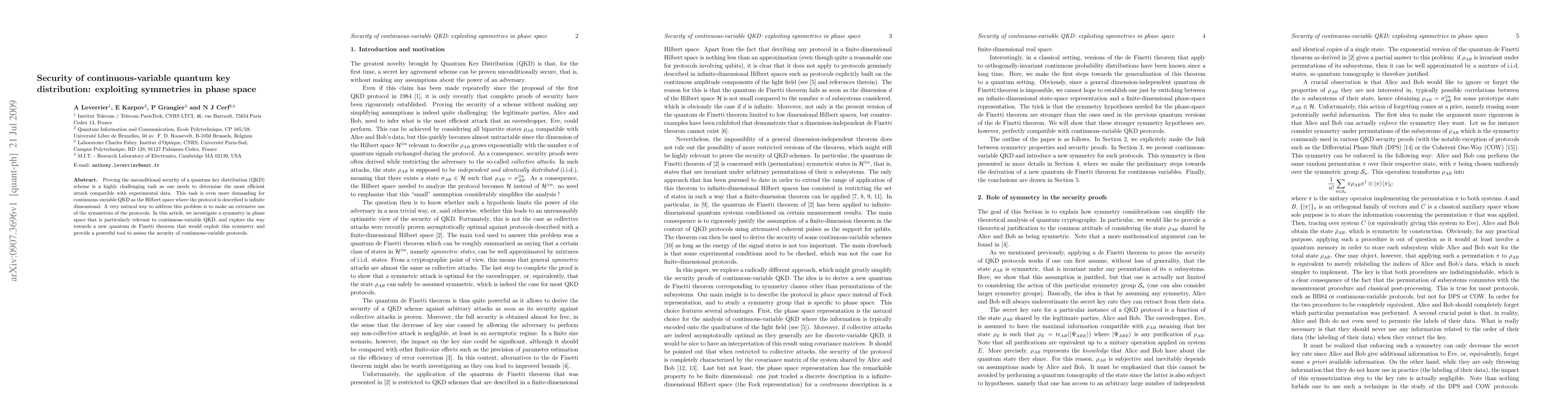 Proving the unconditional security of a quantum key distribution (QKD) scheme is a highly challenging task as one needs to determine the most efficient attack compatible with experimental data. This task is even more demanding for continuous-variable QKD as the Hilbert space where the protocol is described is infinite dimensional. A very natural way to address this problem is to make an extensive use of the symmetries of the protocols. In this article, we investigate a symmetry in phase space that is particularly relevant to continuous-variable QKD, and explore the way towards a new quantum de Finetti theorem that would exploit this symmetry and provide a powerful tool to assess the security of continuous-variable protocols.