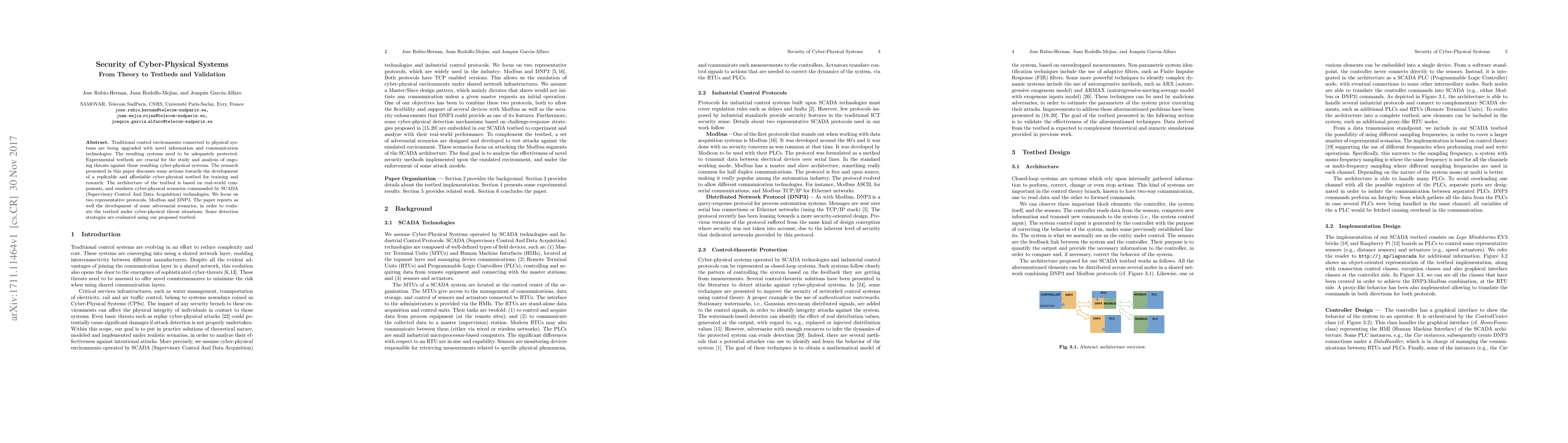 This paper develops a replicable and affordable cyber-physical testbed based on real-world components and SCADA technologies, focusing on Modbus and DNP3 protocols. The testbed is used to evaluate adversarial scenarios and assess detection strategies for cyber-physical security threats.