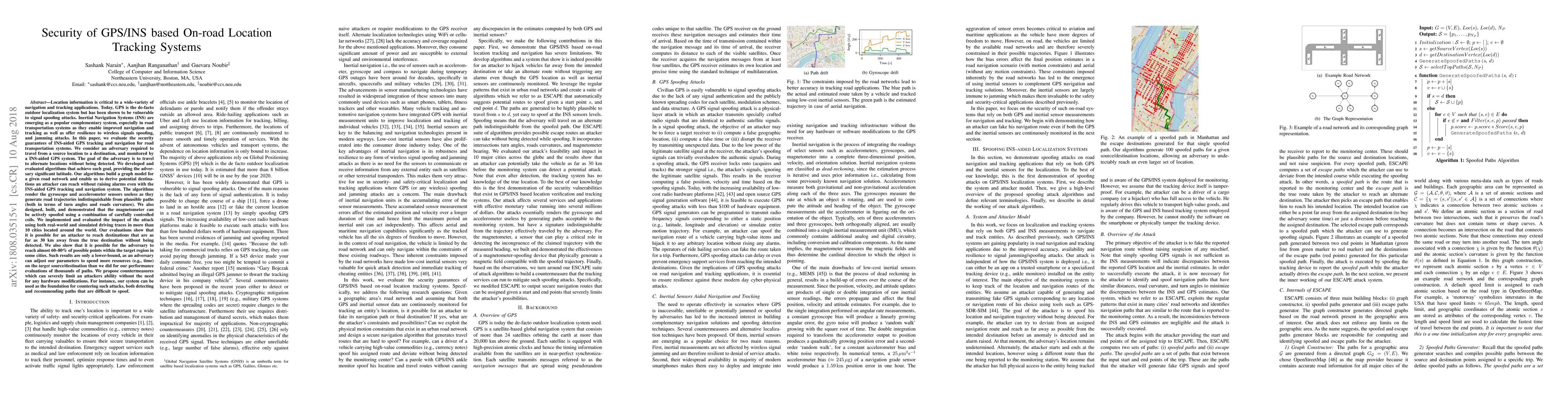 This paper evaluates the security of INS-aided GPS systems for on-road location tracking, demonstrating that adversaries can reach destinations up to 30 km away without detection. The study shows that gyroscope and accelerometer sensors can be rendered ineffective, and magnetometers can be spoofed, highlighting significant vulnerabilities in current navigation systems.