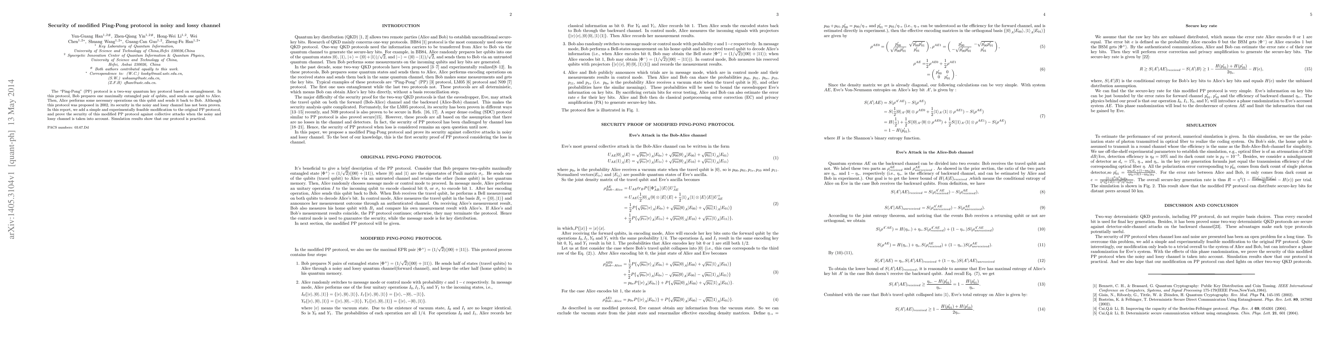 A modified version of the Ping-Pong protocol is proposed to enhance security in noisy and lossy channels, and its security is proven against collective attacks through simulation results.