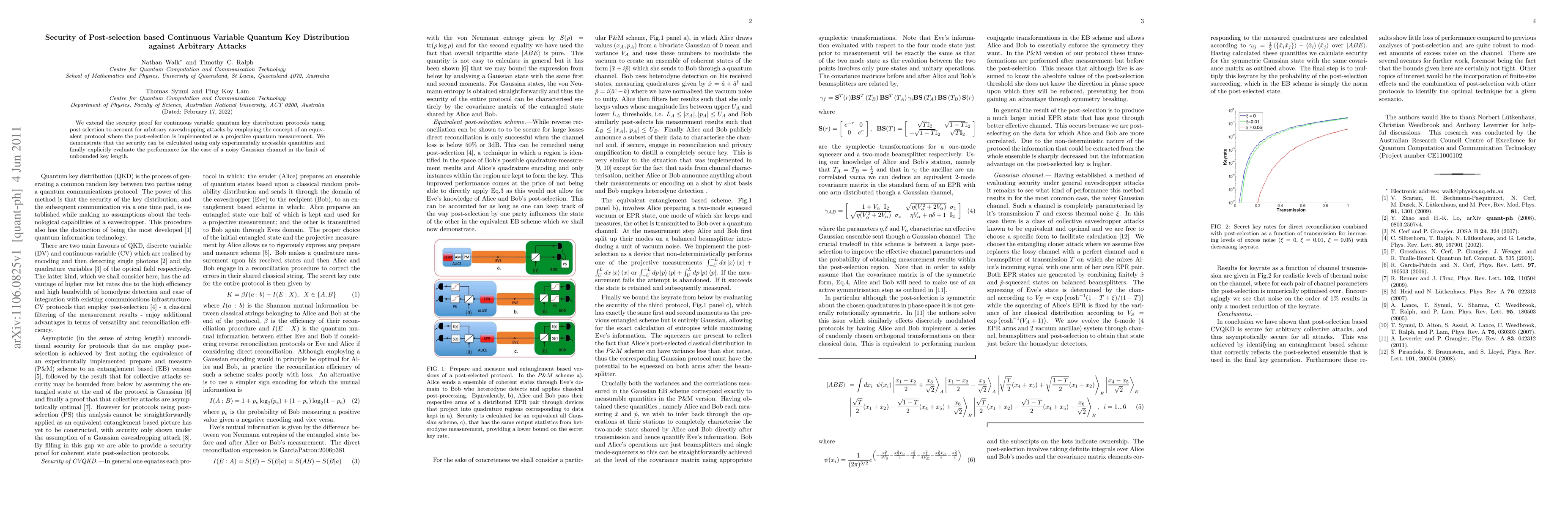 This paper extends the security proof for continuous variable quantum key distribution protocols using post-selection to cover arbitrary eavesdropping attacks, showing that security can be calculated using only experimentally accessible quantities. It evaluates the performance for noisy Gaussian channels with unbounded key length.
