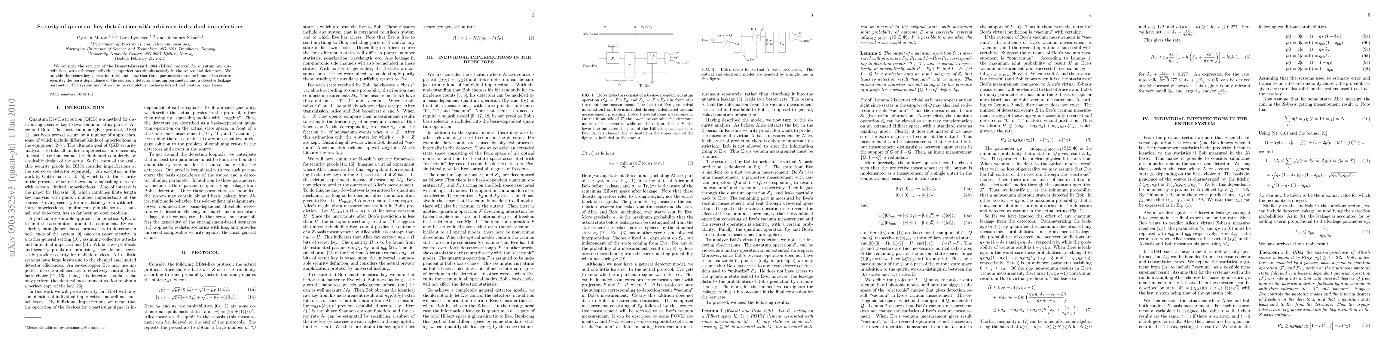 This paper examines the security of the BB84 QKD protocol under various imperfections in both the source and detectors, demonstrating that only two parameters need to be bounded to ensure secure key generation, regardless of other system characteristics.