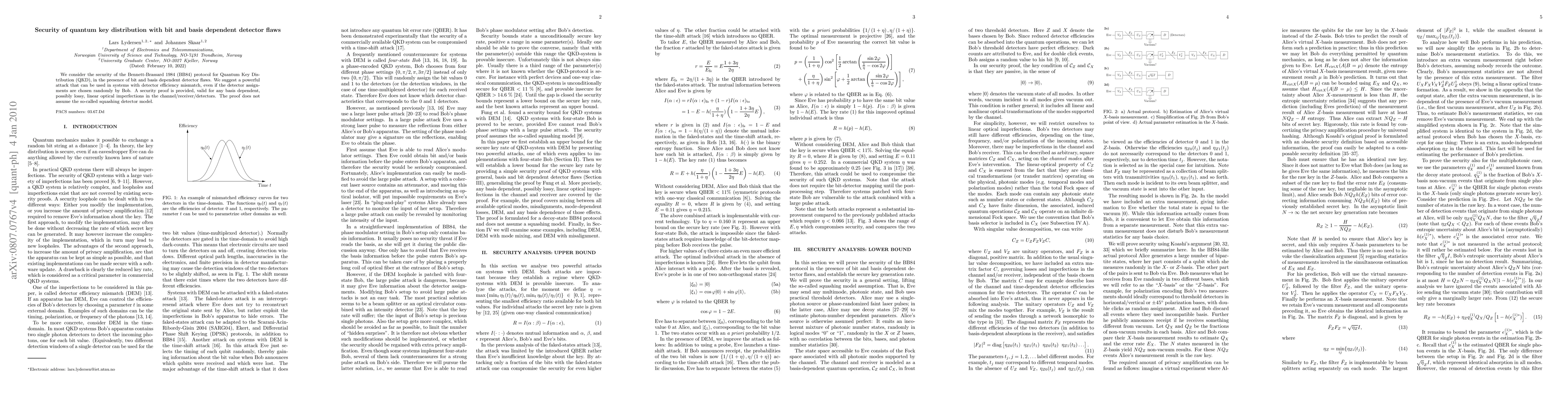 This paper examines the security of the BB84 QKD protocol under bit and basis dependent detector flaws, presenting a potent attack applicable to systems with mismatched detector efficiencies, even with random detector assignments by Bob. The provided security proof accommodates various linear optical imperfections without relying on the squashing detector model.