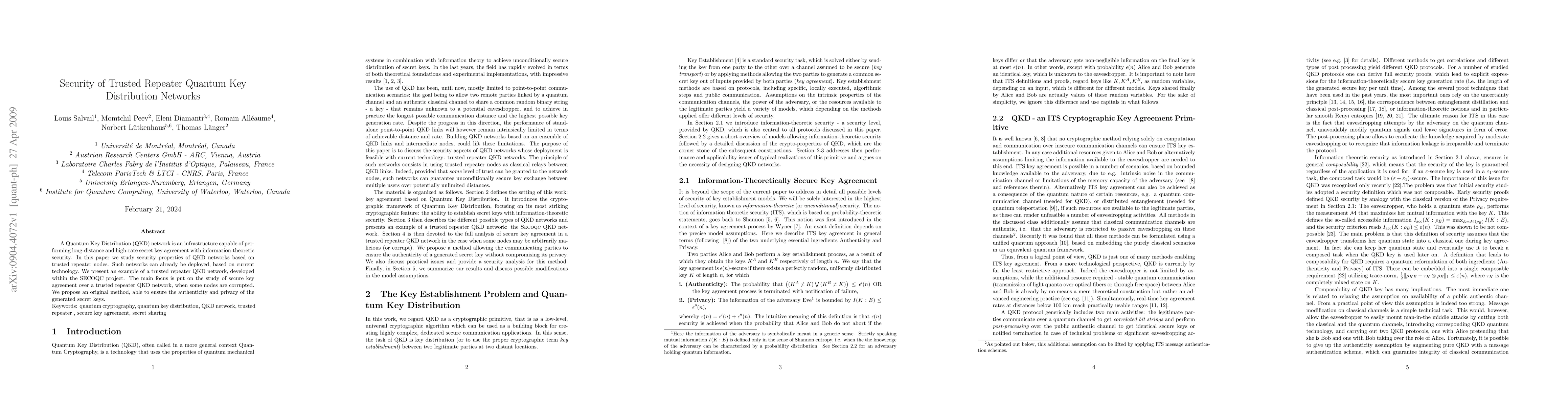This paper investigates the security of Quantum Key Distribution (QKD) networks utilizing trusted repeater nodes, focusing on secure key agreement when some nodes are compromised. It proposes a novel method to ensure the authenticity and privacy of generated secret keys within such networks.