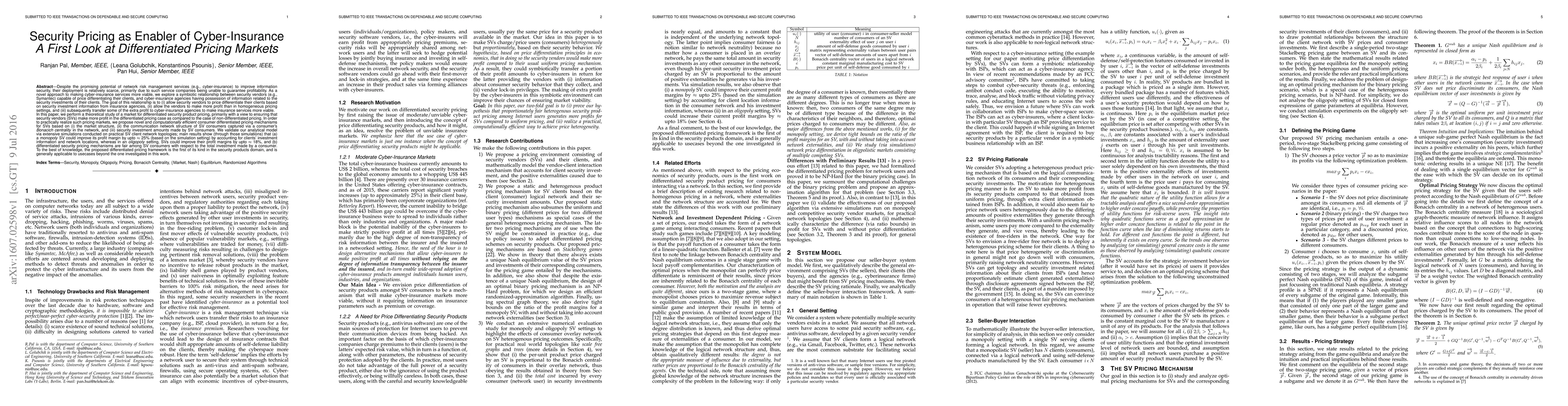 This paper explores how differentiated pricing can make cyber-insurance services more viable by enabling security vendors to price their products based on clients' security investments, thus increasing profitability and allowing some profit to be transferred back to insurance agencies. It proposes computationally efficient pricing mechanisms considering market and network structures.