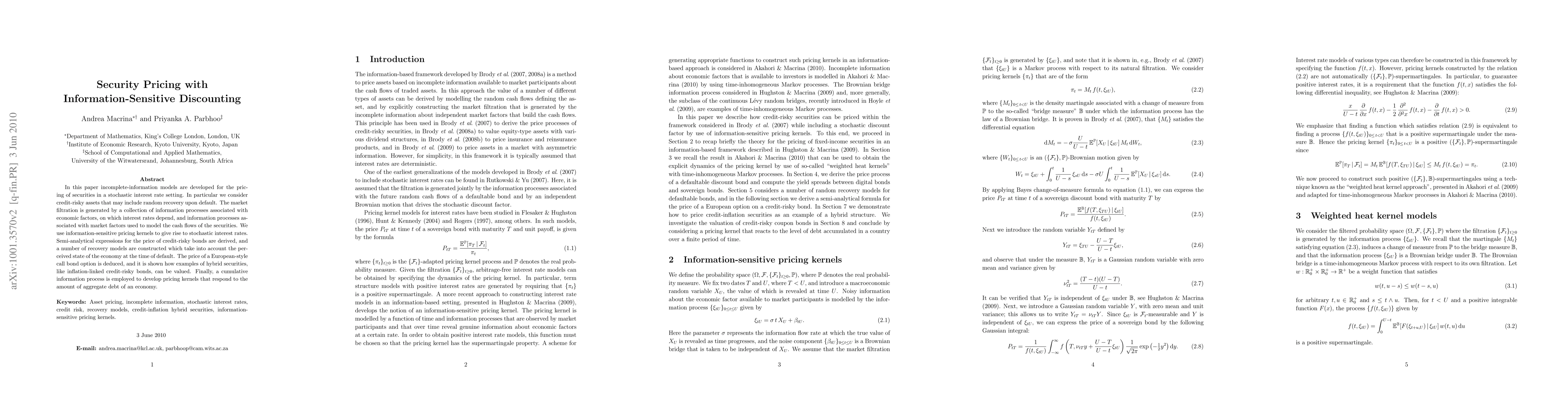In this paper incomplete-information models are developed for the pricing of securities in a stochastic interest rate setting. In particular we consider credit-risky assets that may include random recovery upon default. The market filtration is generated by a collection of information processes associated with economic factors, on which interest rates depend, and information processes associated with market factors used to model the cash flows of the securities. We use information-sensitive pricing kernels to give rise to stochastic interest rates. Semi-analytical expressions for the price of credit-risky bonds are derived, and a number of recovery models are constructed which take into account the perceived state of the economy at the time of default. The price of European-style call bond options is deduced, and it is shown how examples of hybrid securities, like inflation-linked credit-risky bonds, can be valued. Finally, a cumulative information process is employed to develop pricing kernels that respond to the amount of aggregate debt of an economy.