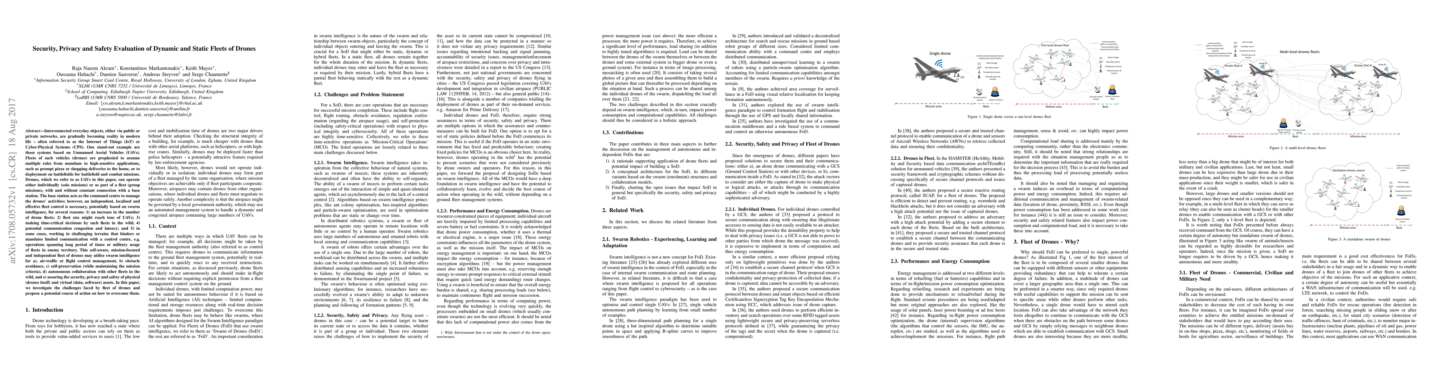 This paper investigates the security, privacy, and safety challenges of drone fleets and proposes solutions to overcome them, including swarm intelligence for autonomous control and collaboration with other fleets.