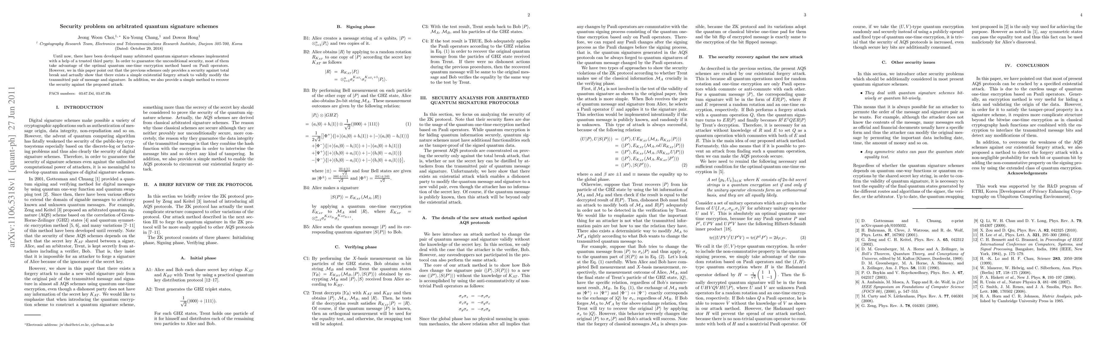 This paper identifies a security flaw in existing arbitrated quantum signature schemes, demonstrating an existential forgery attack that can modify message and signature pairs. The authors propose a method to restore security against this attack.