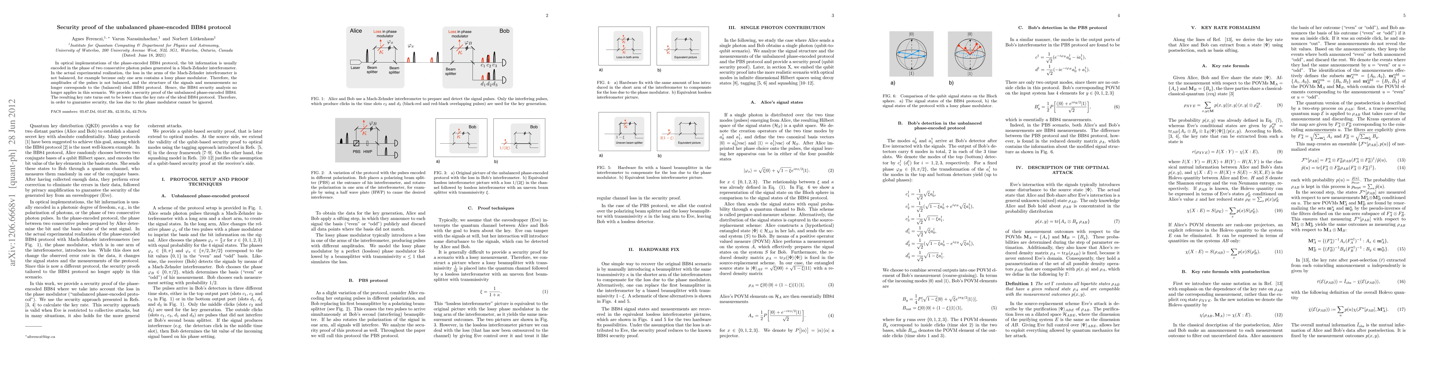 This paper provides a security proof for the unbalanced phase-encoded BB84 protocol, addressing the loss imbalance in optical implementations. It reveals that the key rate is lower than in the ideal balanced BB84 protocol, emphasizing the necessity to account for loss in the phase modulator to ensure security.