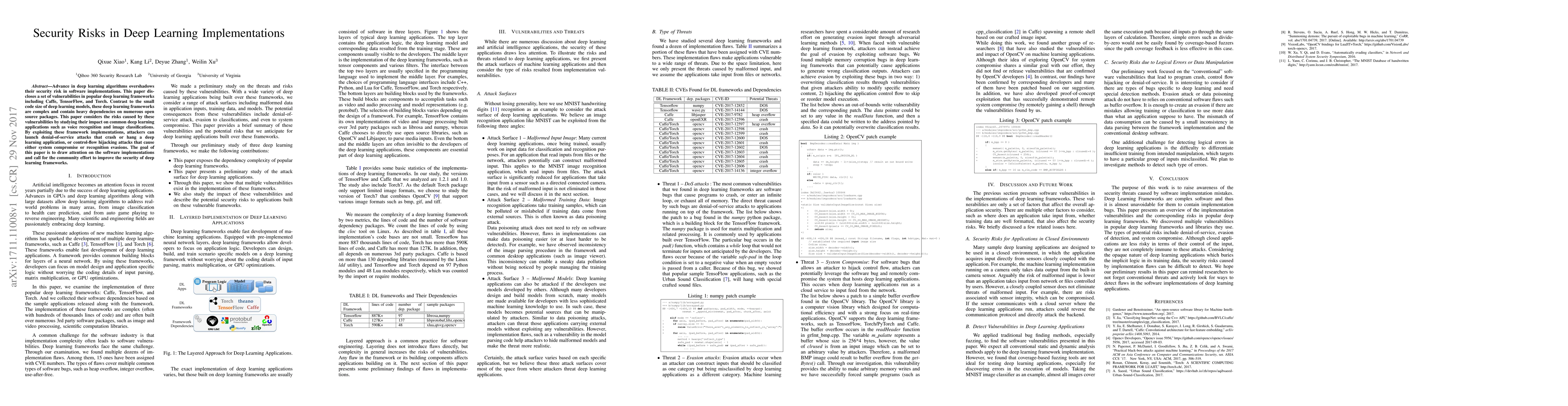 This research identified multiple software vulnerabilities in popular deep learning frameworks and provided a foundation for future work on improving application security.