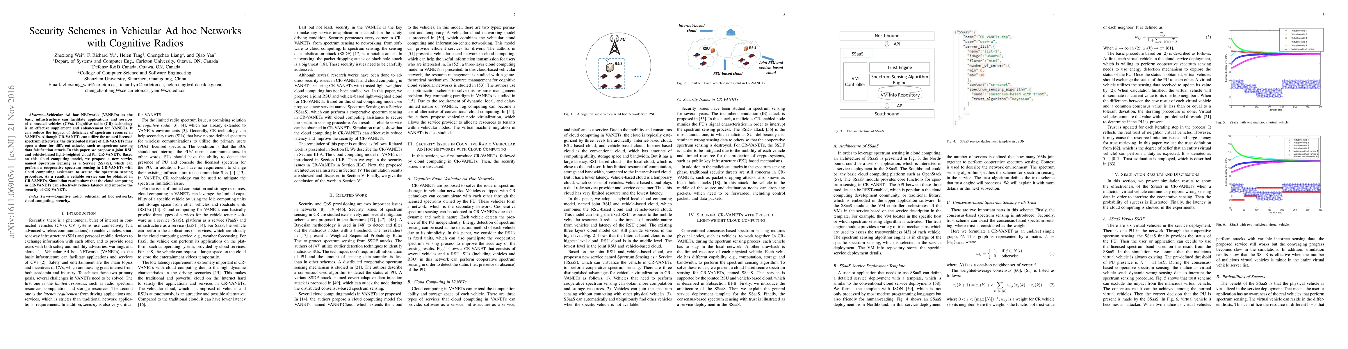 This paper proposes a lightweight cloud model combining roadside units (RSUs) and vehicles to enhance security in Vehicular Ad hoc Networks (VANETs) using cognitive radio technology. The introduced Spectrum Sensing as a Service (SSaaS) leverages cloud computing to secure spectrum sensing, reducing latency and improving overall security.